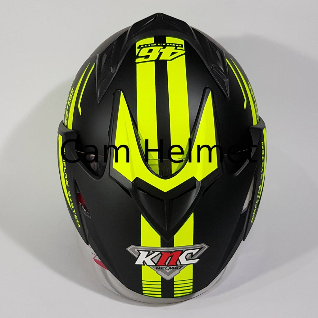 Kelebihan - Kelebihan membeli Helm Motor SNI 2 kaca (double visor) KNC Rossi 46 Black doff Yellow di Toko ini