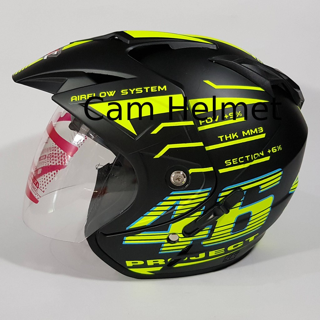 Alasan kenapa harus beli Helm Motor SNI 2 kaca (double visor) KNC Rossi 46 Black doff Yellow sekarang