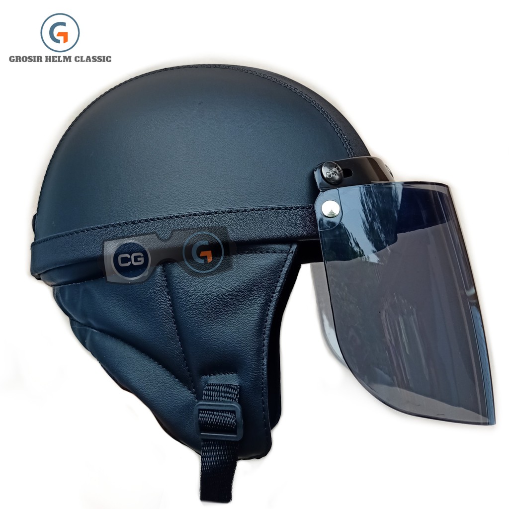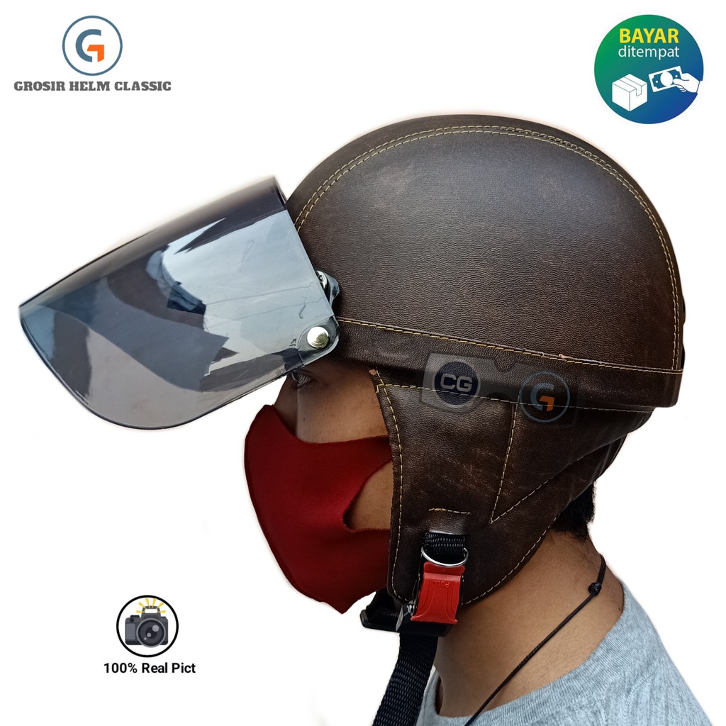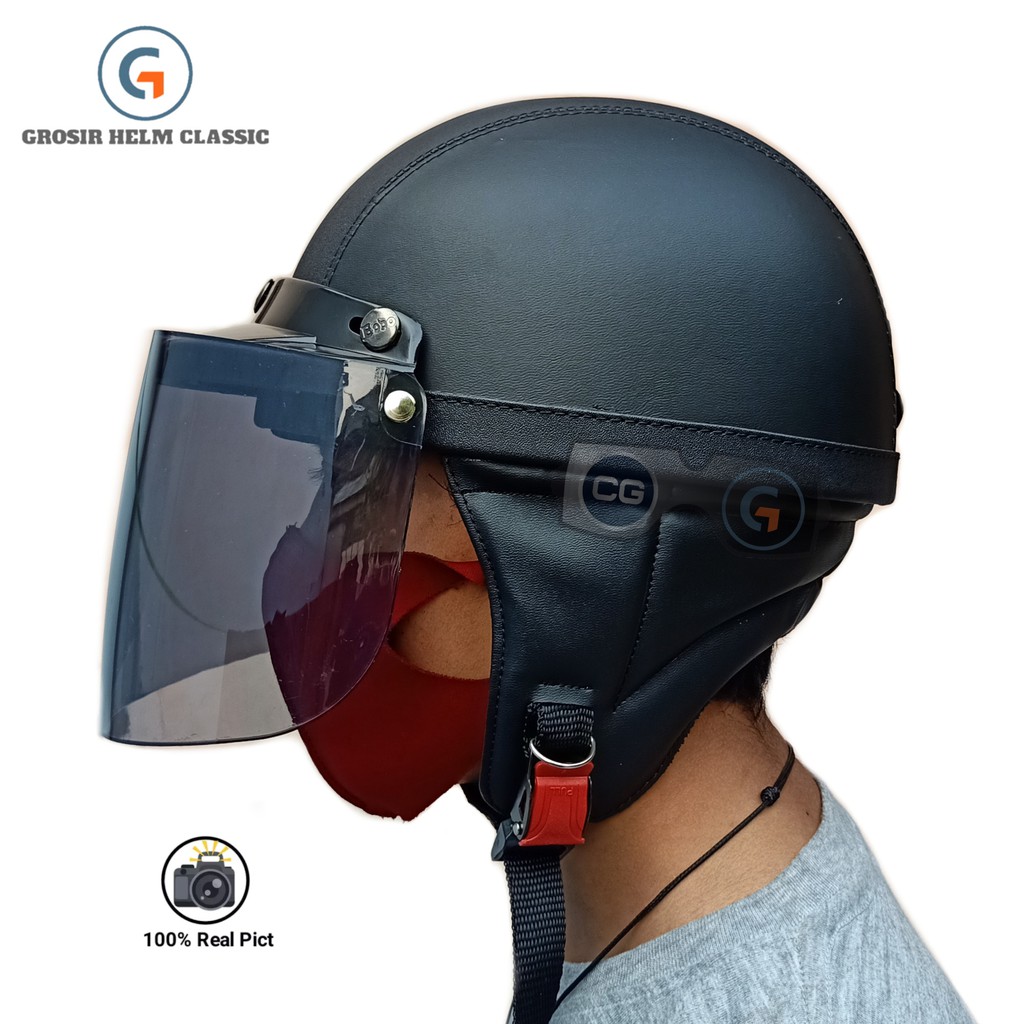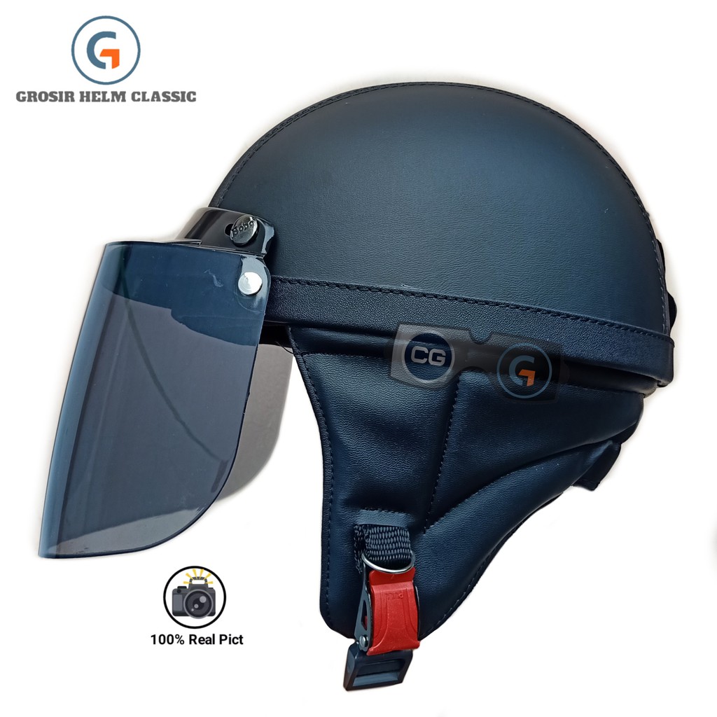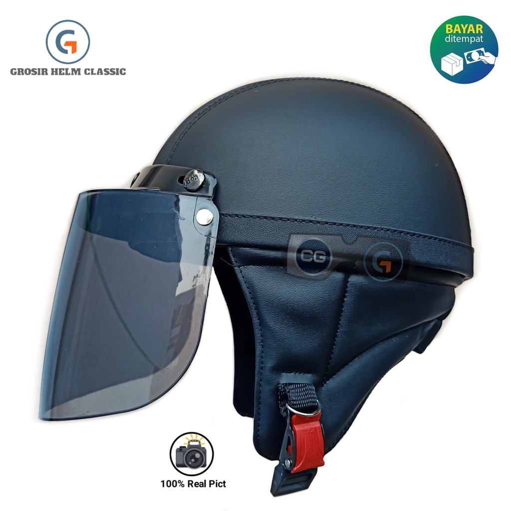 Kelebihan - Kelebihan membeli Helm retro chips HITAM KULIT KOMBINASI KACA DATAR ATAU FLAT/helm bogo chips / helm chip clasik HITAM di Toko ini
