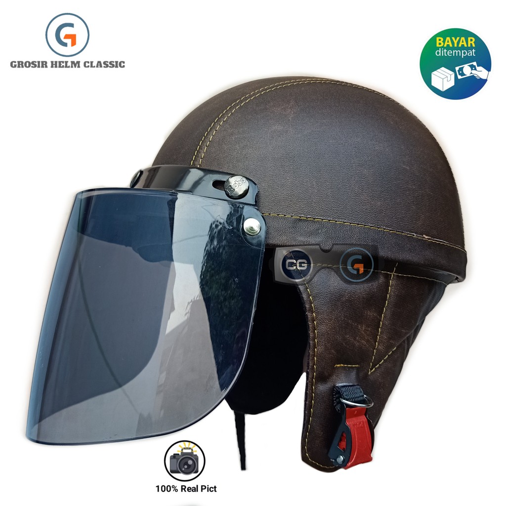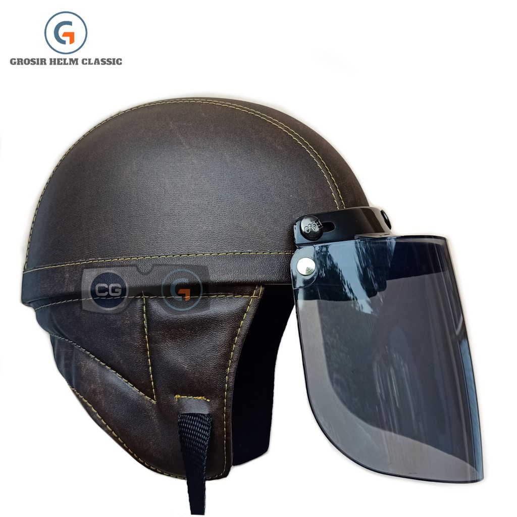 Kekurangan - Kekurangan membeli Helm retro chips HITAM KULIT KOMBINASI KACA DATAR ATAU FLAT/helm bogo chips / helm chip clasik HITAM di Toko ini
