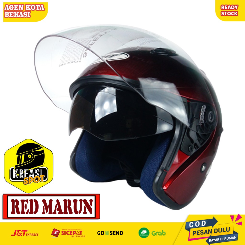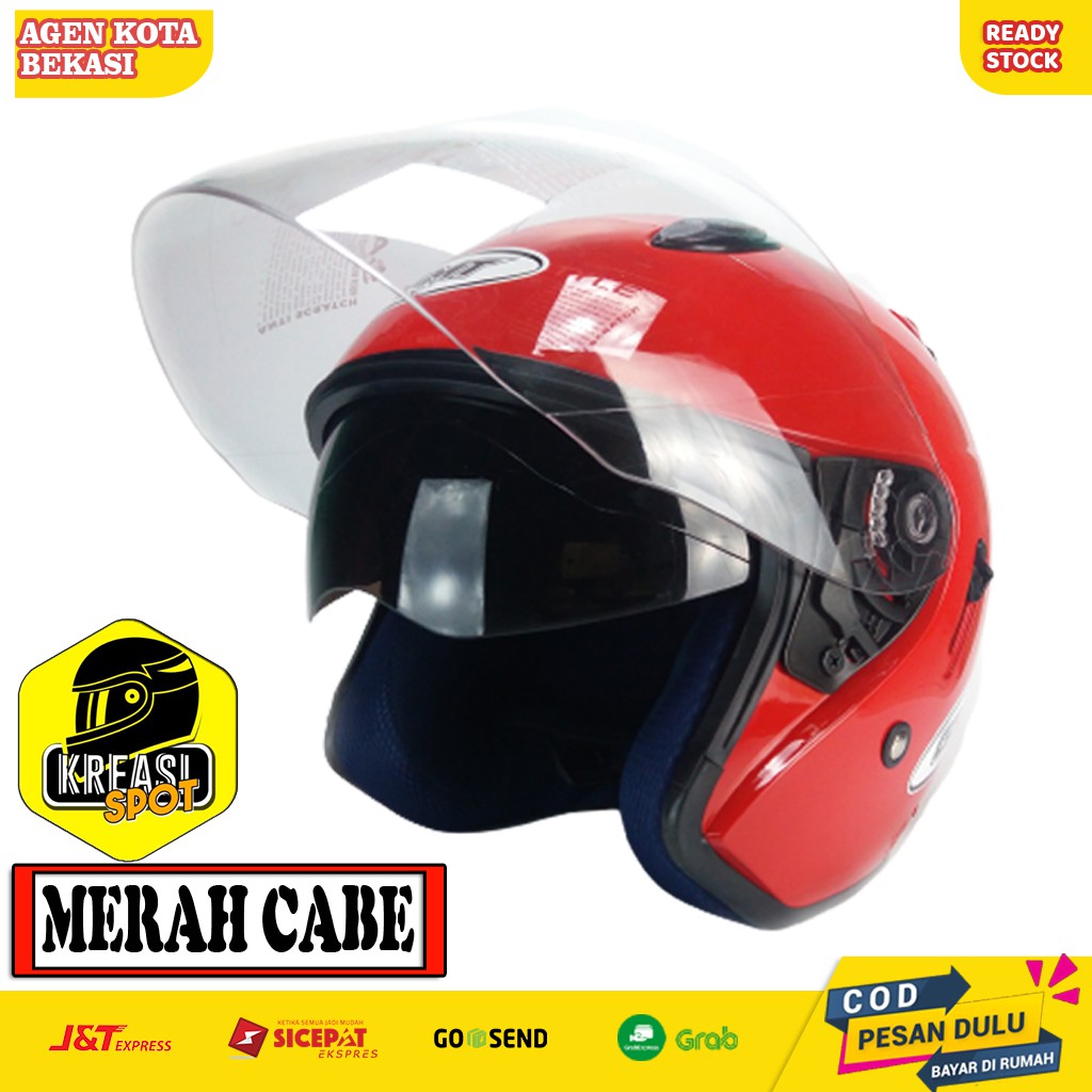 - Produk ini tidak sedang Flash Sale, tidak semua Seller suka Flash Sale, saya rasa ini bukan kekurangan, Jika Anda anggap Harga Rp. 195.000,00 itu murah untuk HELM SNI PRIA WANITA CEWEK COWOK DEWASA COUPLE LUCU ORIGINAL GMT CENTRO HALF FACE DOUBLE VISOR MURAH ya ambil saja
