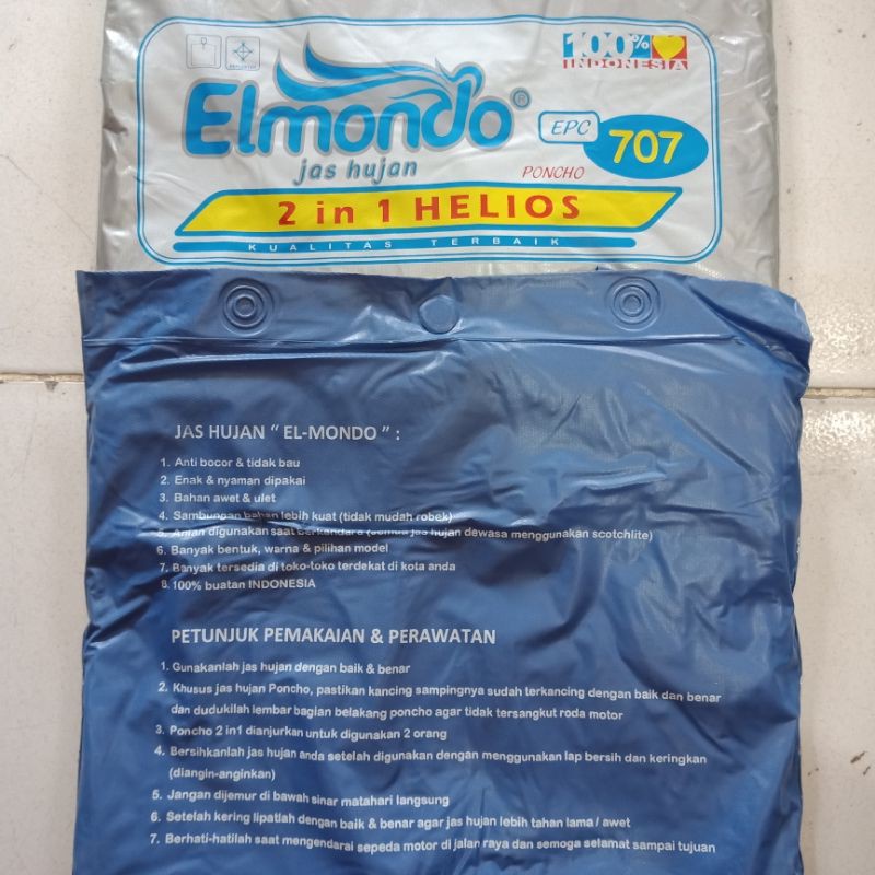 Harga Jas Hujan 2 in 1 Murah Helios Elmondo 707 / Jas Hujan Berdua Boncengan 2 Kepala Murah Laris Terlaris saat ini masih murah hanya Rp. 47.898,00, kita tidak akan pernah tahu tentang Harga ini di masa depan, juga stok barang ini nanti atau besok hari, bisa saja harganya naik tinggi atau bisa juga stok sudah Habis.