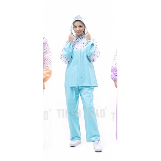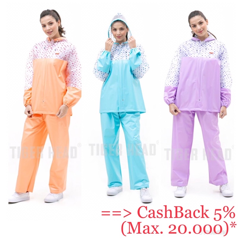 Kelebihan - Kelebihan membeli Jas Hujan GEMINI Stelan Jaket Celana Polkadot Setelan Wanita merk TIGER HEAD 68203 di Toko ini