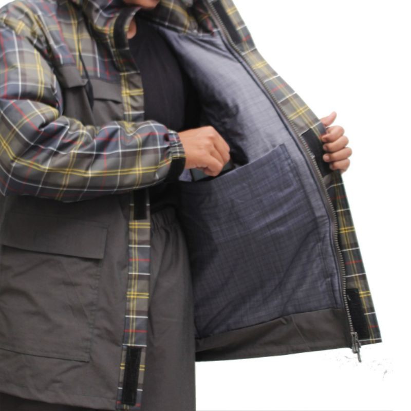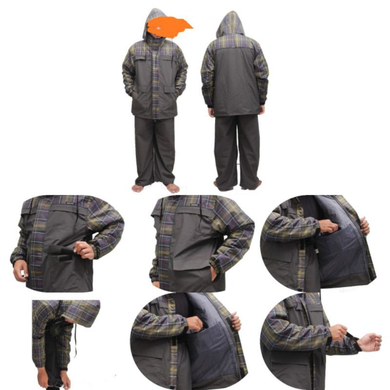 Kelebihan - Kelebihan membeli Jas Hujan Pria Wanita / Jas Hujan Setelan Tebal DASUS / Jas Hujan Taslan Impor Abu Kombinasi Motif di Toko ini