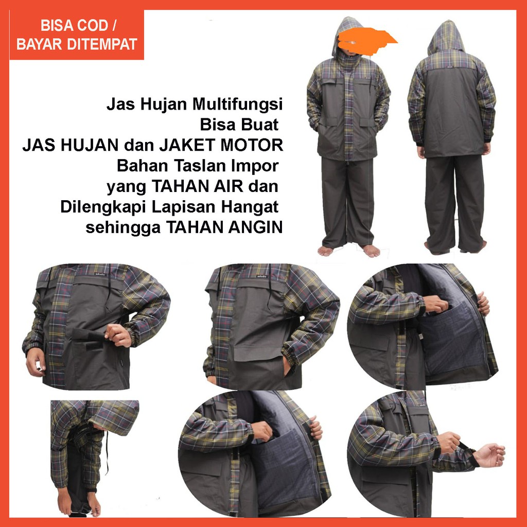 Alasan kenapa harus beli Jas Hujan Pria Wanita / Jas Hujan Setelan Tebal DASUS / Jas Hujan Taslan Impor Abu Kombinasi Motif sekarang