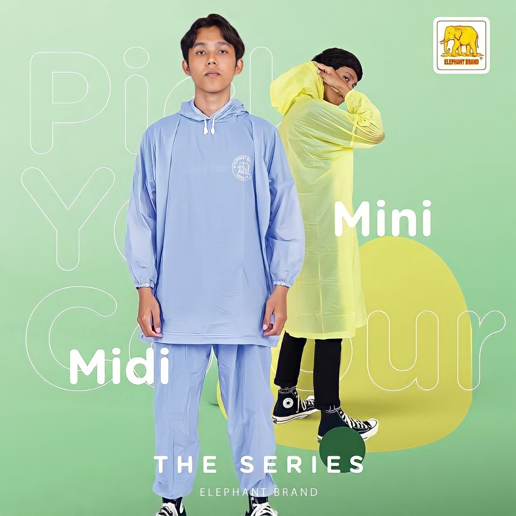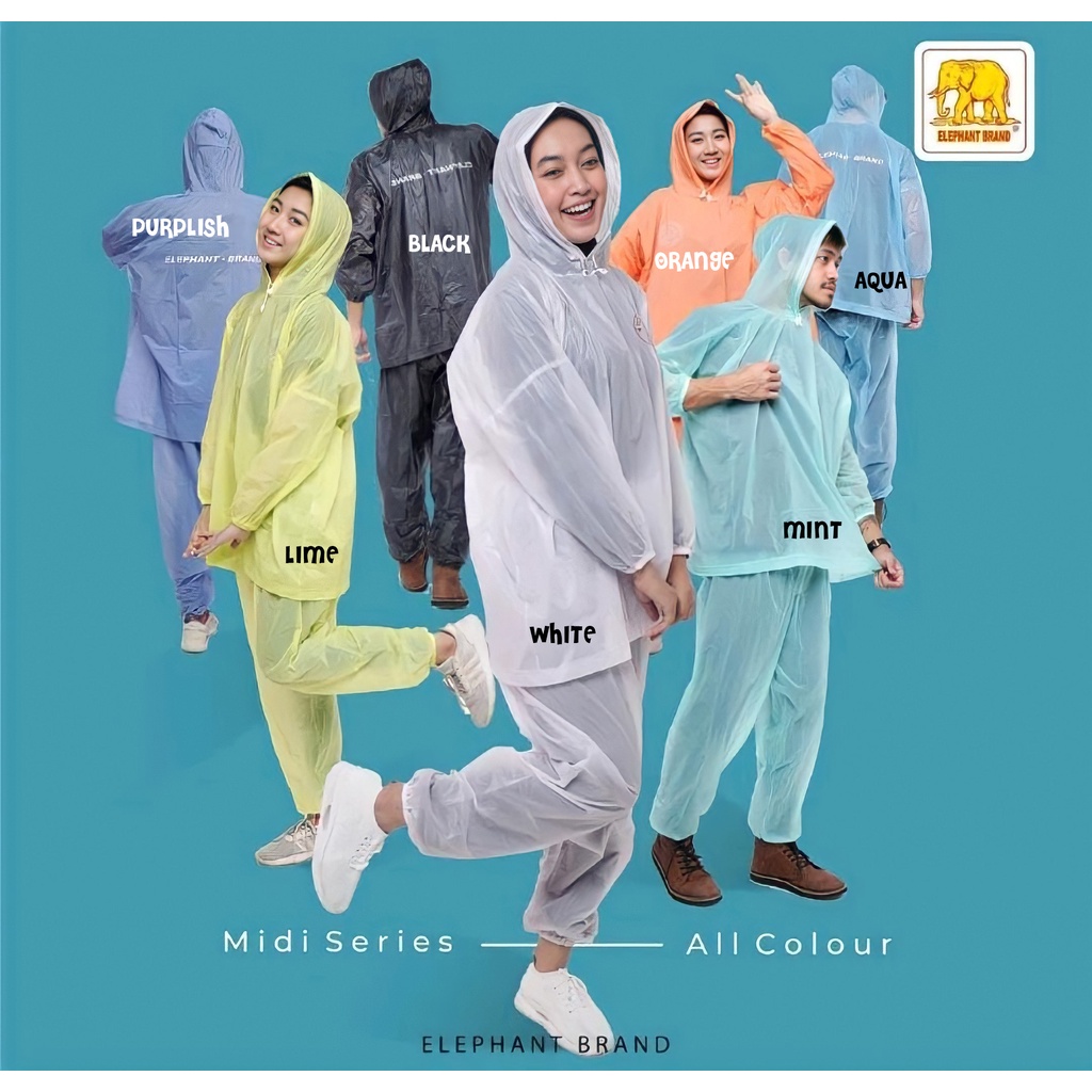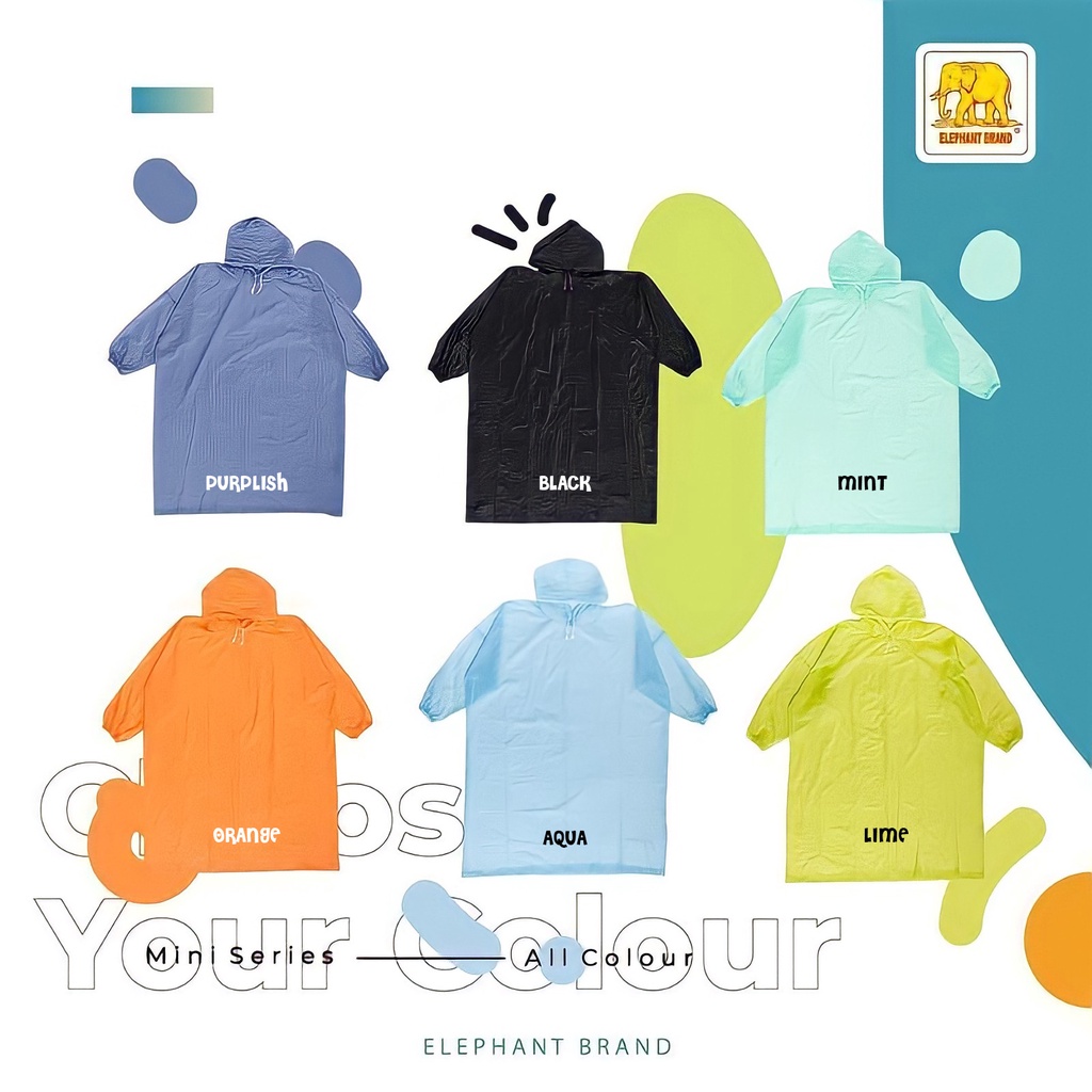 Jas Hujan Travelling Elephant Midi Set Jaket Celana & Gamis Mini Pendek Ponco Berlengan Aneka Warna Murah Ekonomis Unisex Pria Wanita