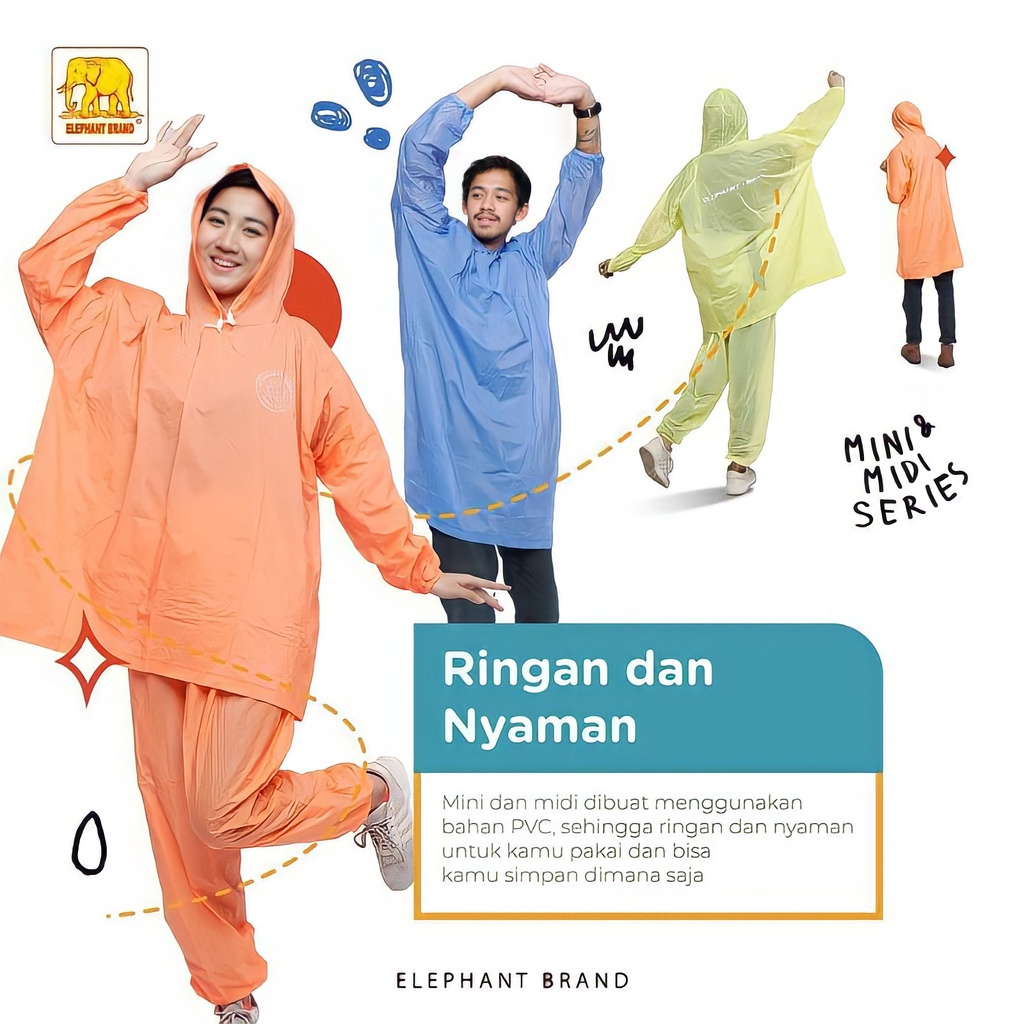 Kelebihan - Kelebihan membeli Jas Hujan Travelling Elephant Midi Set Jaket Celana & Gamis Mini Pendek Ponco Berlengan Aneka Warna Murah Ekonomis Unisex Pria Wanita di Toko ini