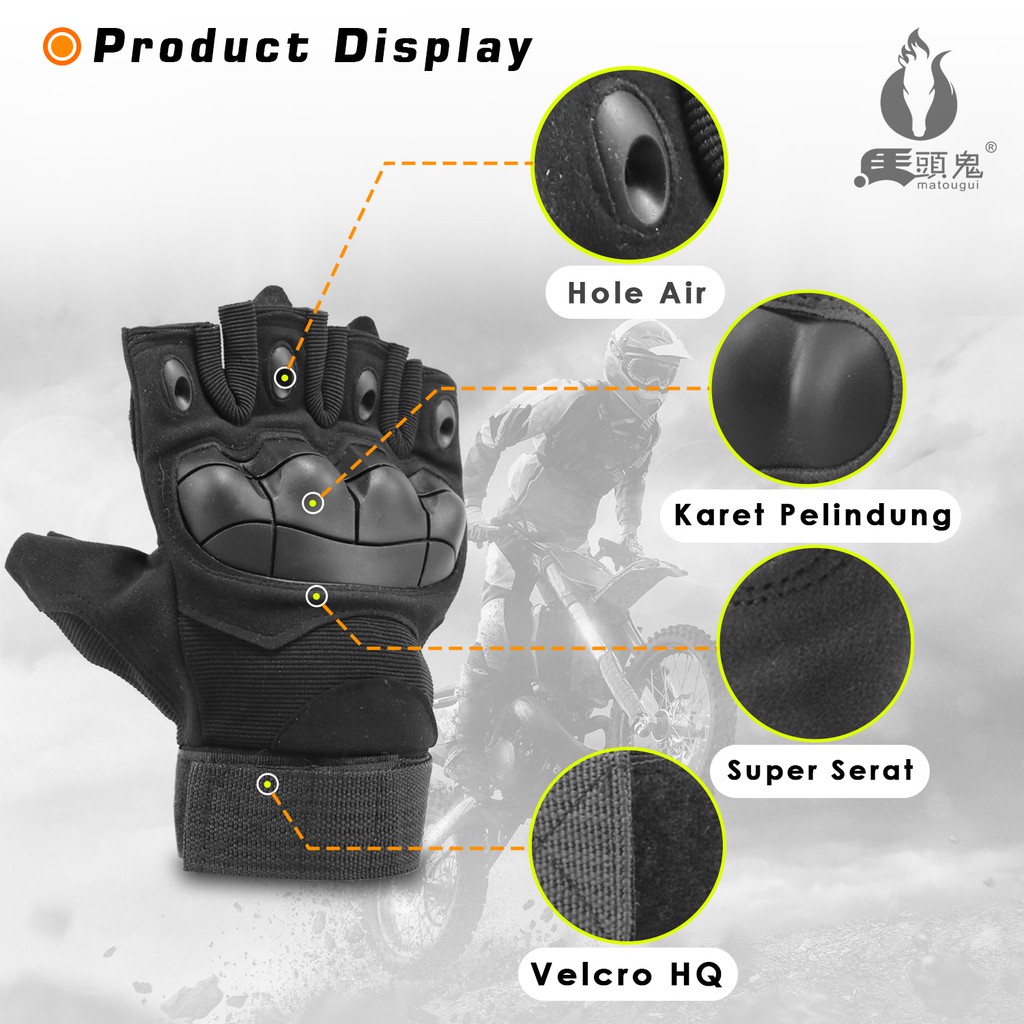 Half Sarung Tangan Motor Sepeda Glove Airsoft Tactical Mechanix Military Off Road M-Pact Covert