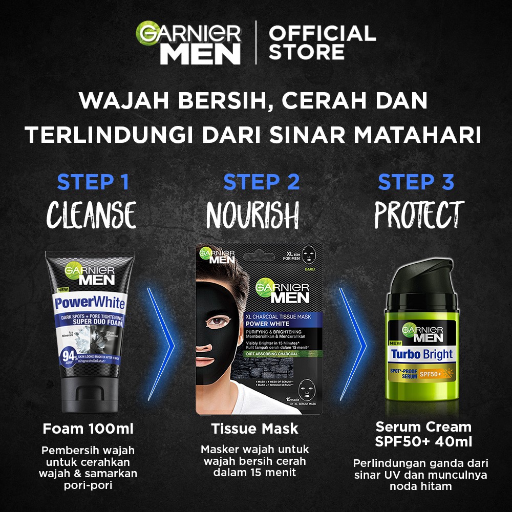 Alasan kenapa harus beli Garnier Men Power White Super Power Brightening Kit ( Membersihkan & Mencerahkan ) sekarang