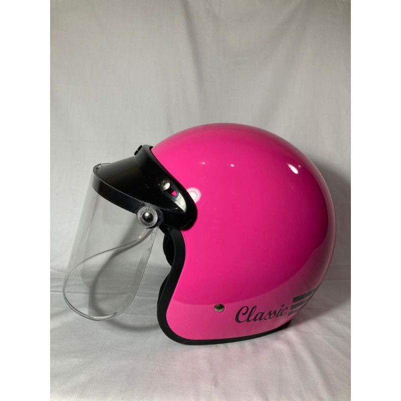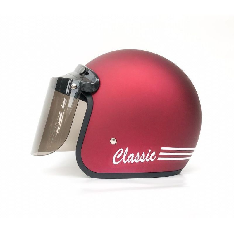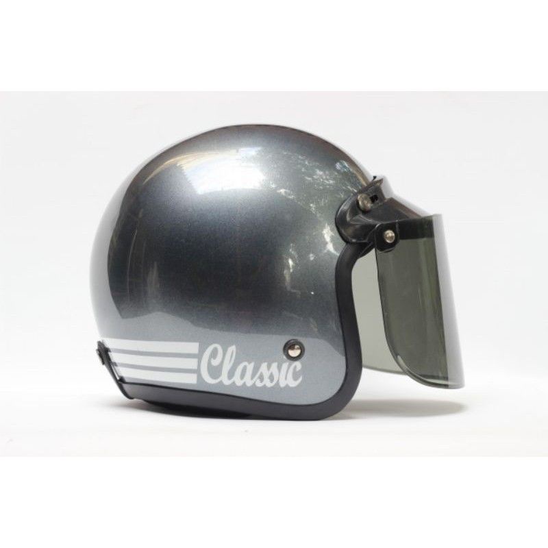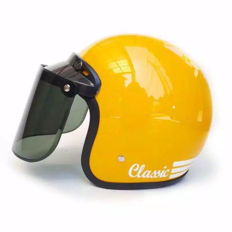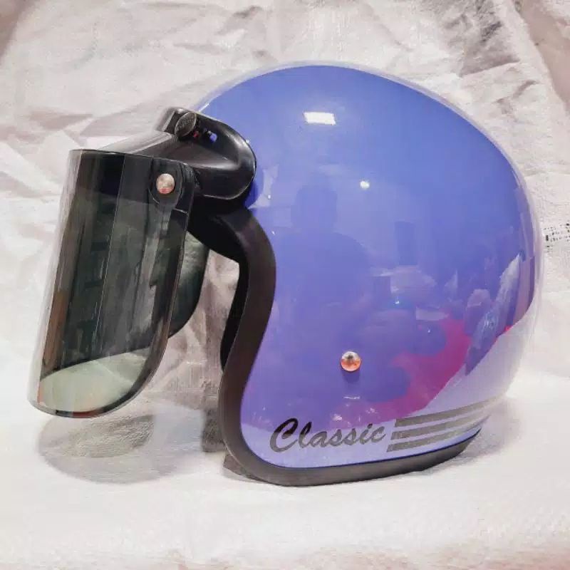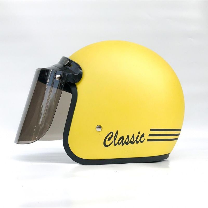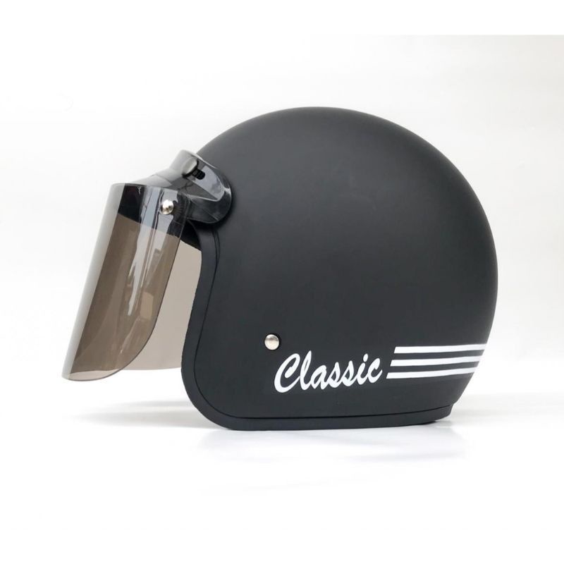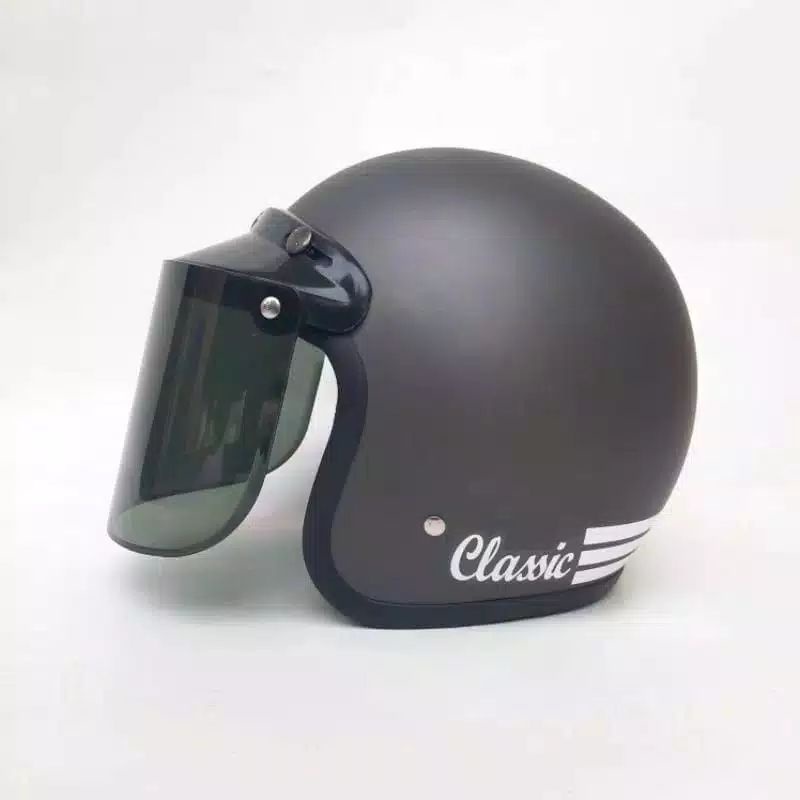 helm bogo classik garis tiga kaca datar flat sni pria wanita dewasa murah polos kaca helm classic