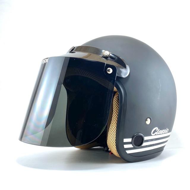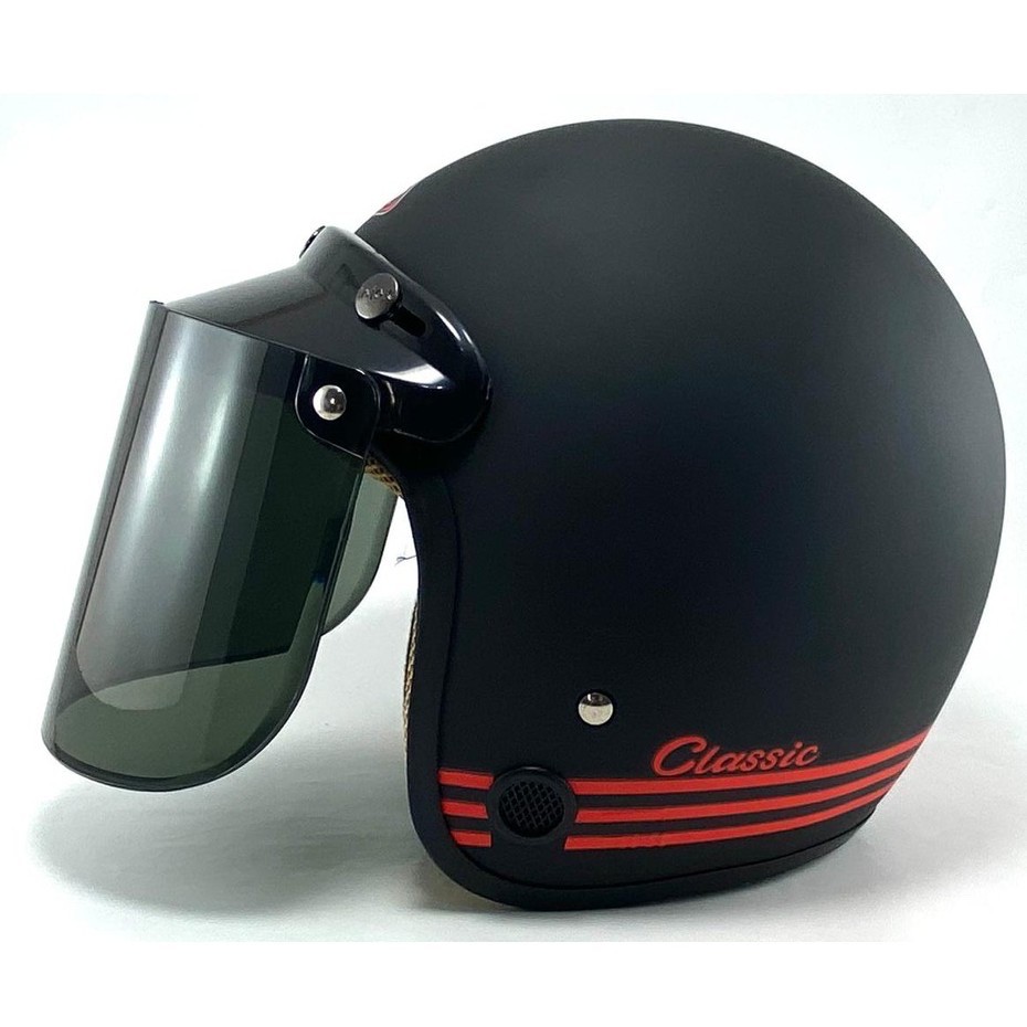 Helm bogo jpn retro arc Hitam Doff kaca flat visor