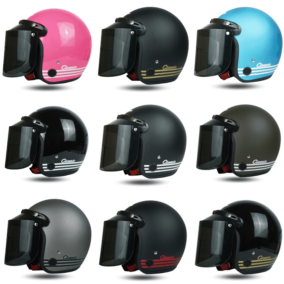 Helm Bogo Dewasa Classic Garis Klasik Retro Wanita Pria Cowok Cewek Wanita Pria SNI