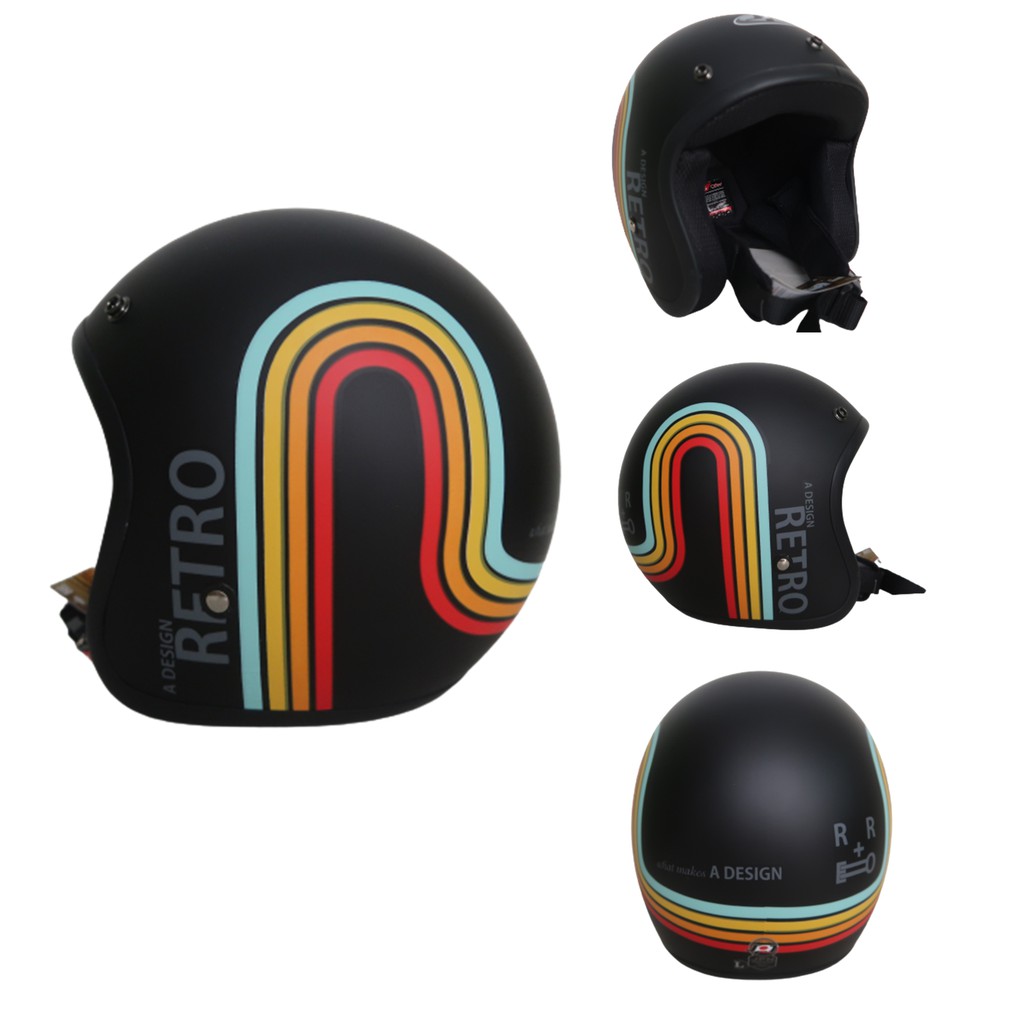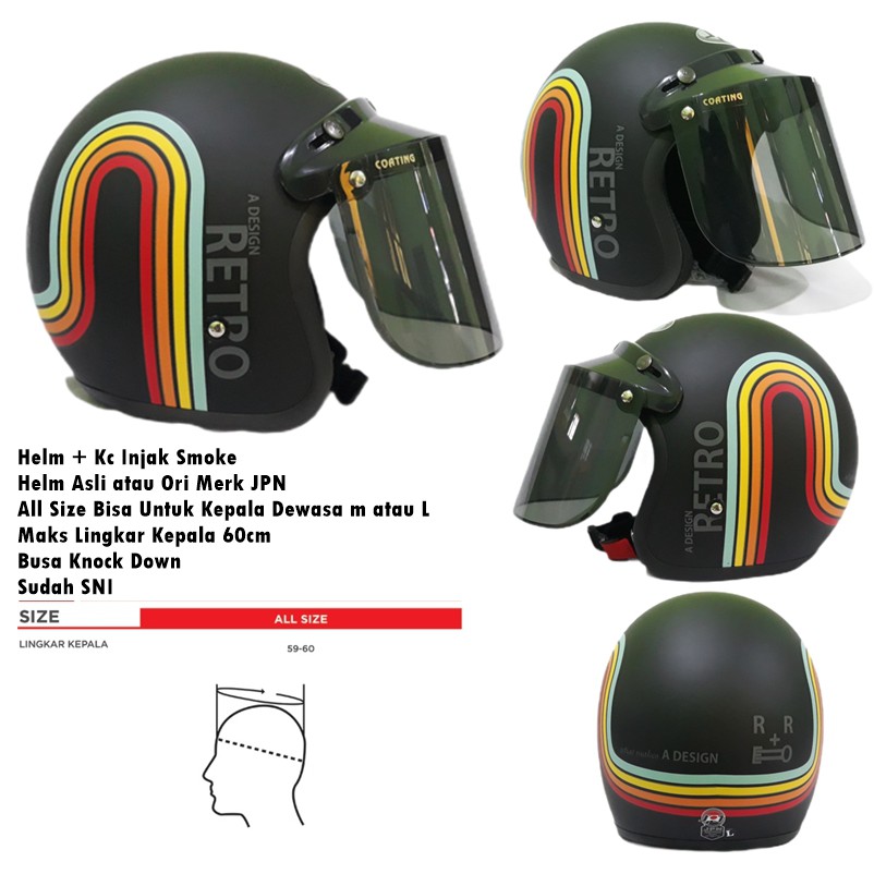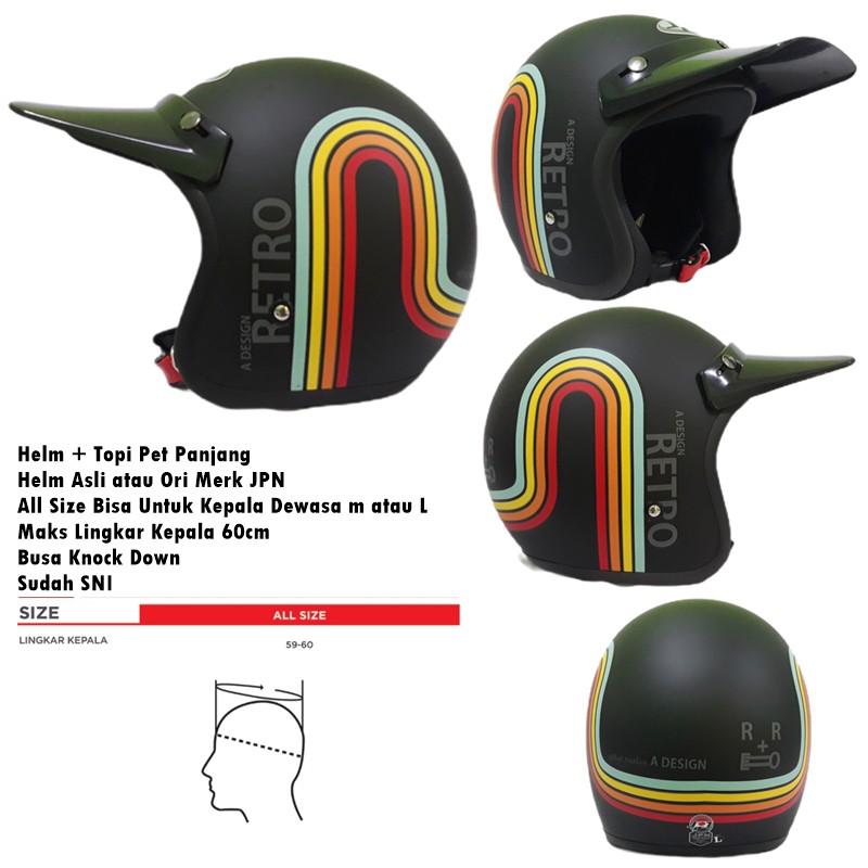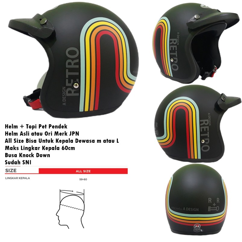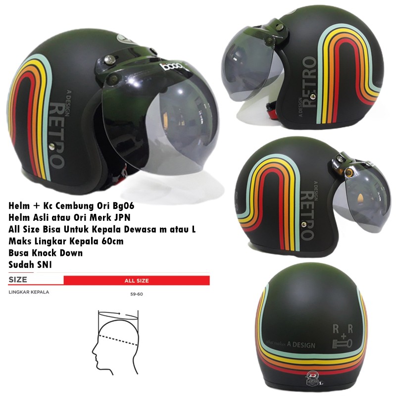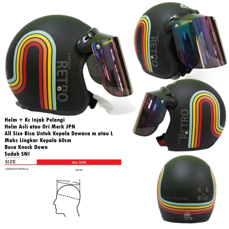 Kelebihan - Kelebihan membeli Helm Bogo Dewasa JPN Retro Klasik A Design Rainbow Pelangi Hitam Doff Kaca Cembung Datar SNI di Toko ini