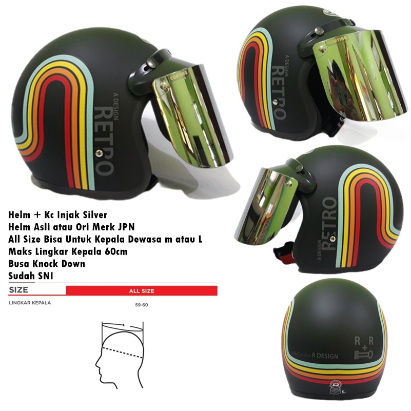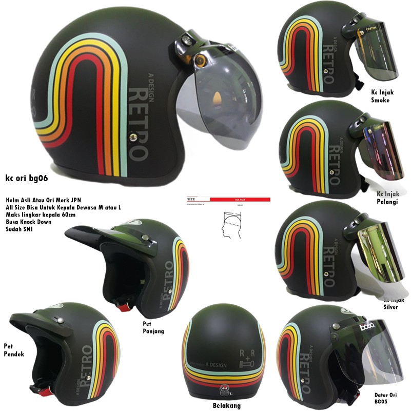 Kekurangan - Kekurangan membeli Helm Bogo Dewasa JPN Retro Klasik A Design Rainbow Pelangi Hitam Doff Kaca Cembung Datar SNI di Toko ini