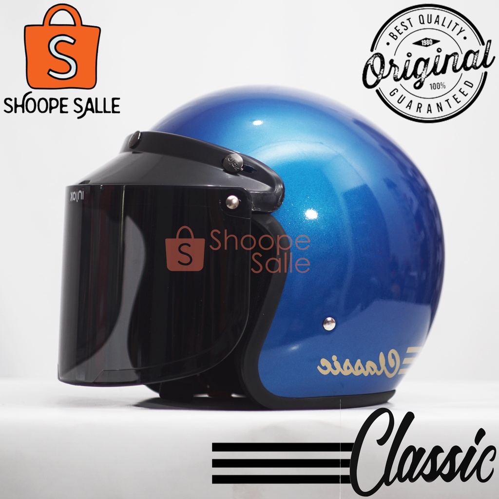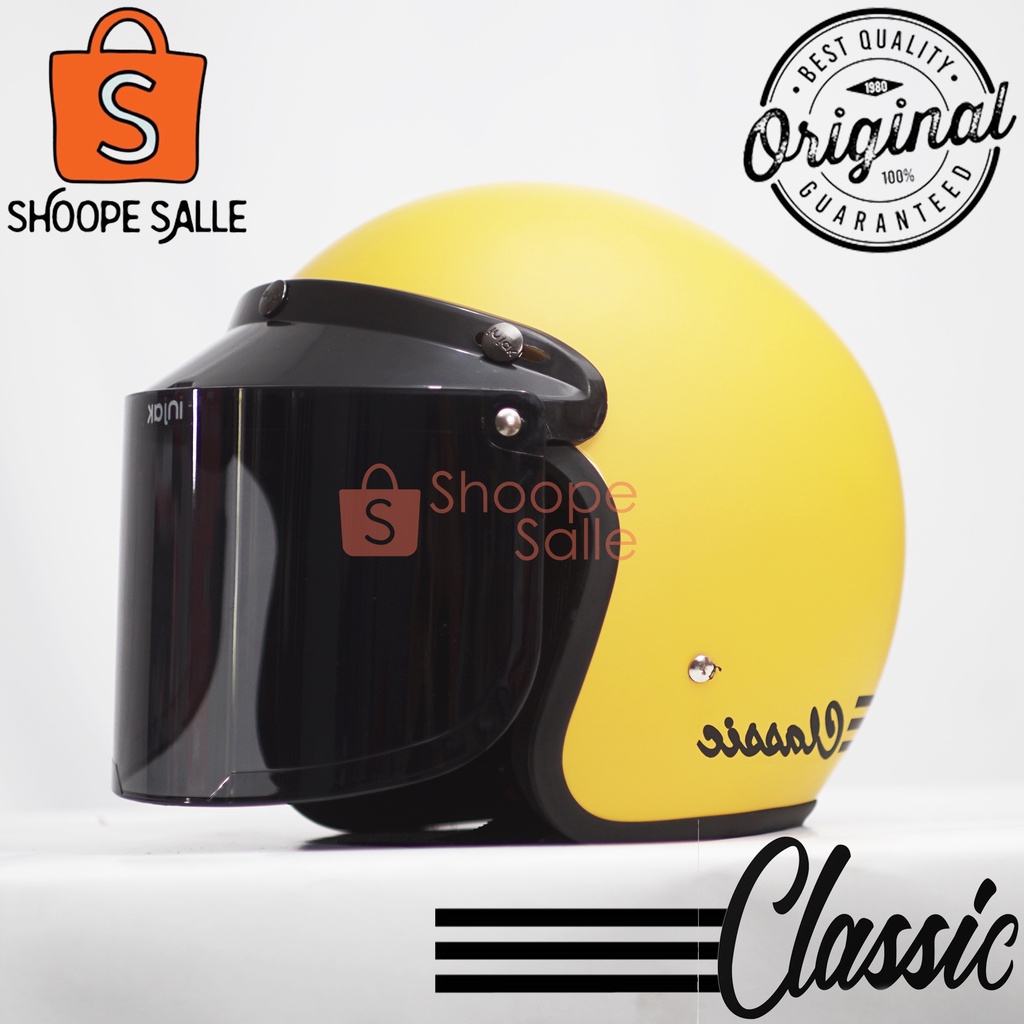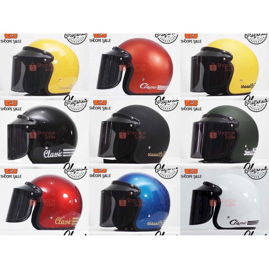 HELM BOGO GARIS CLASIC | HELM BOGO GARIS KACA FLAT INJAK ORIGINAL