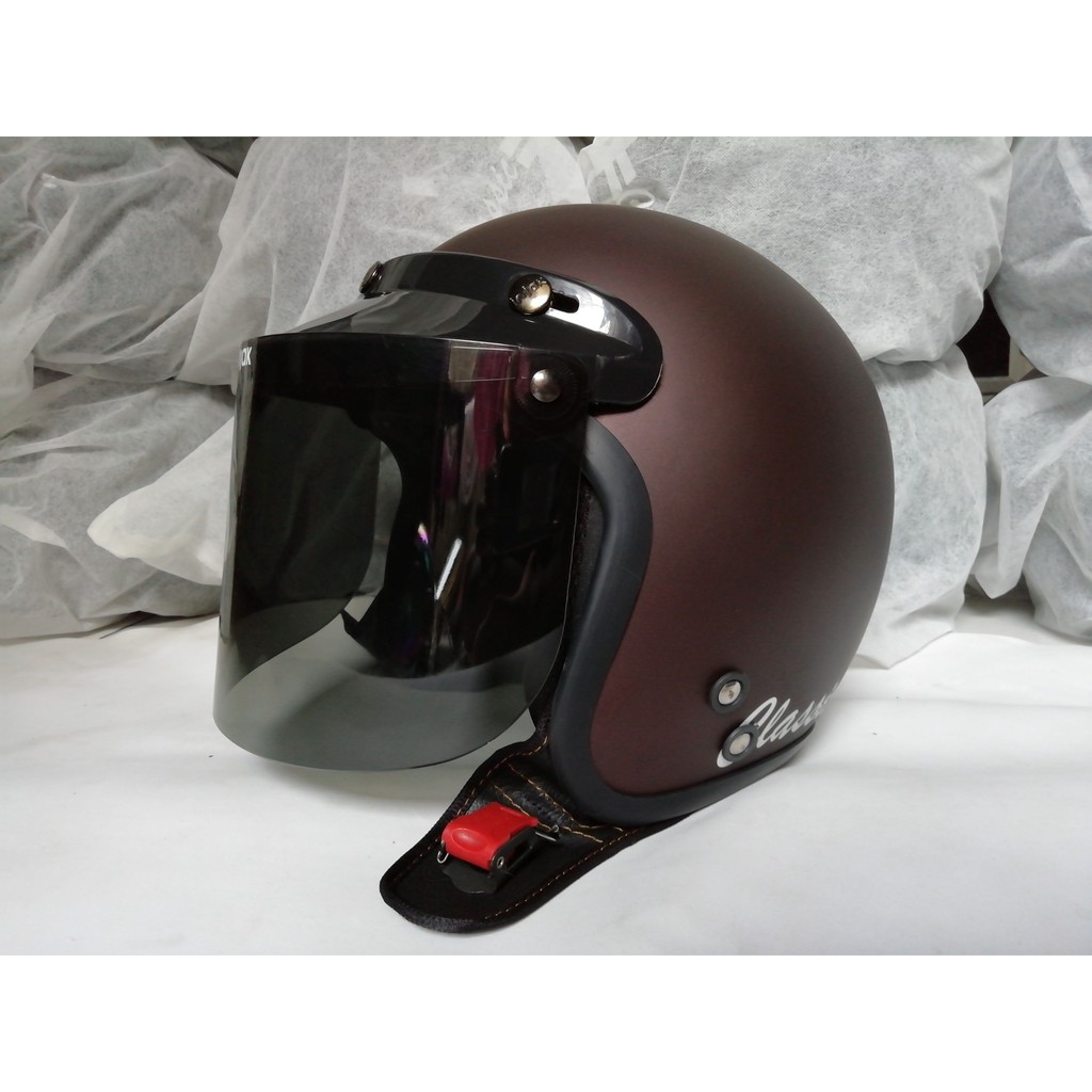 HELM BOGO RETRO CLASSIC DEWASA COKLAT DOFF DATAR SMOKE