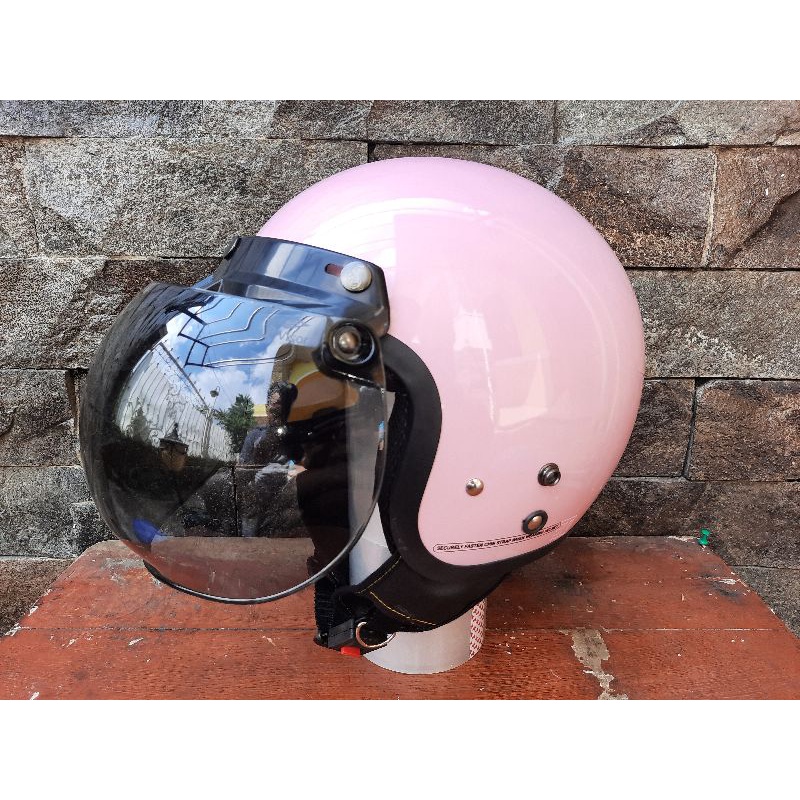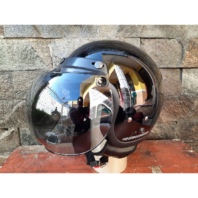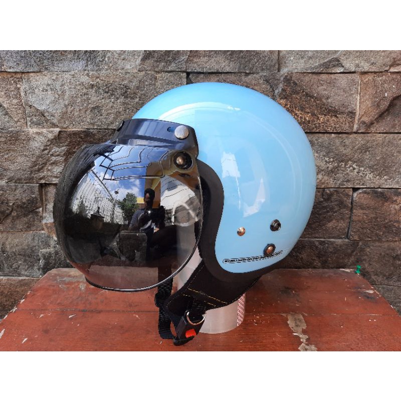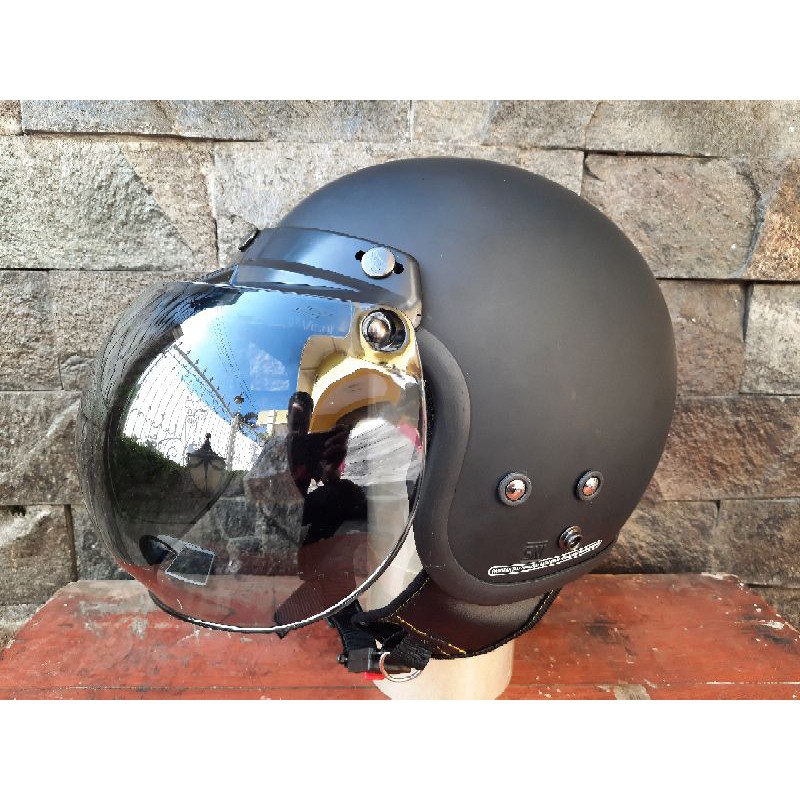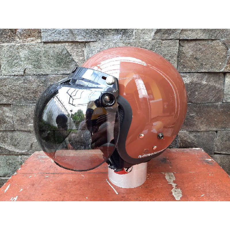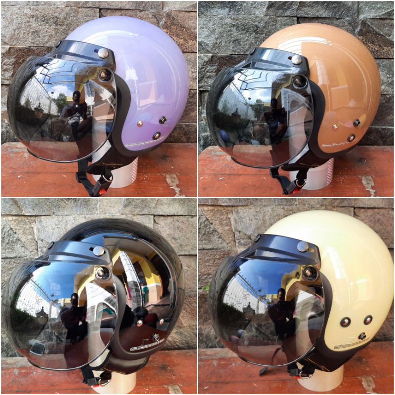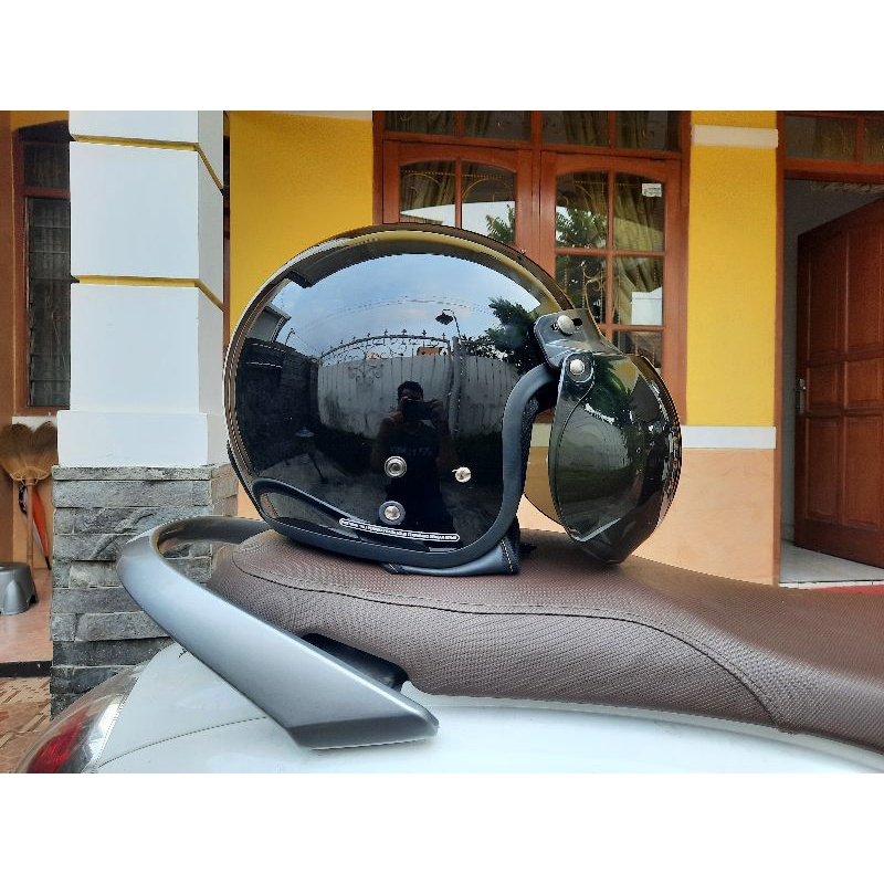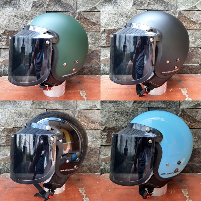 Helm Bogo Retro Dewasa Classic SNI Full Leher Kaca Cembung Dan Kaca Datar