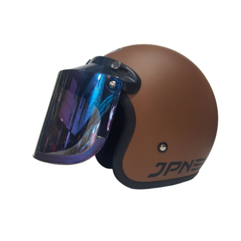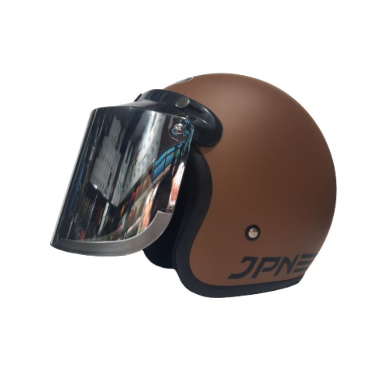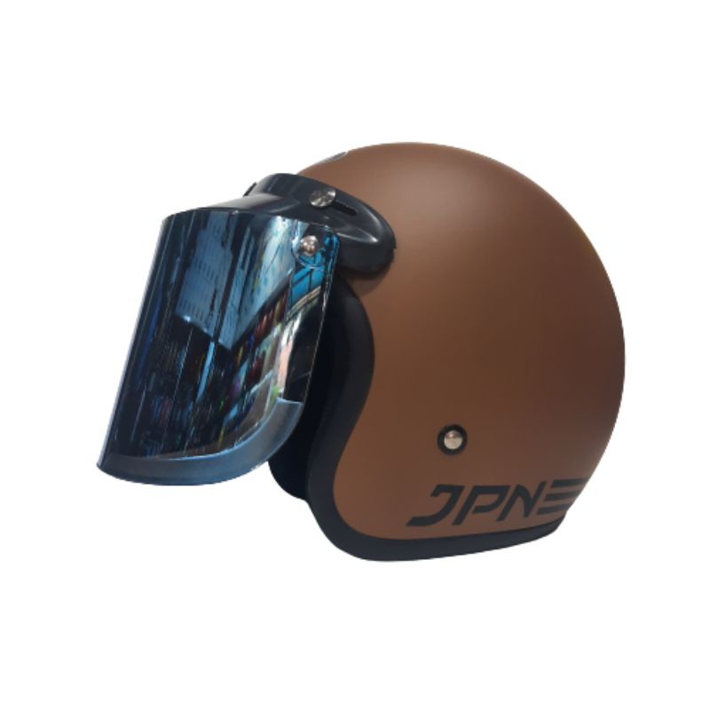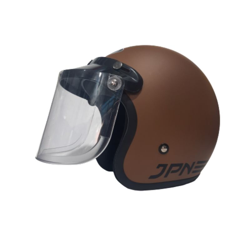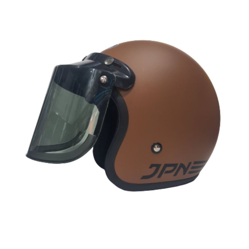 Helm Bogo Retro JPN ARC Coklat Doff Kaca Visor Flat Datar Cembung