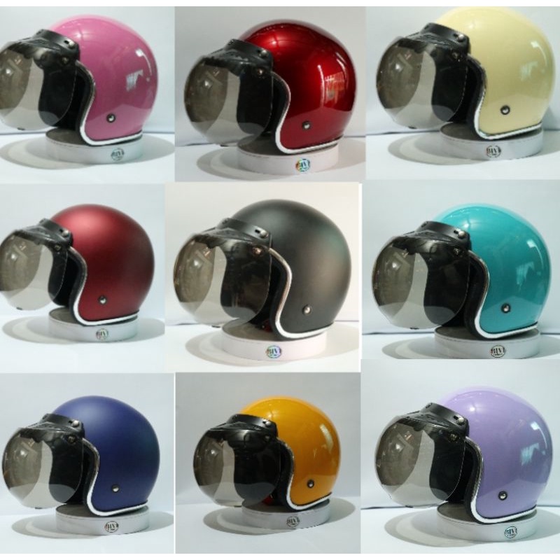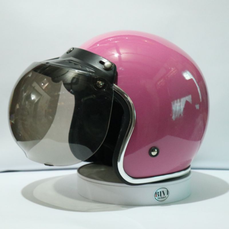 HELM BOGO WANITA DEWASA RETRO CLASSIC PASTEL POLOS KACA DATAR CEMBUNG SNI TERBARU PINK PASTEL