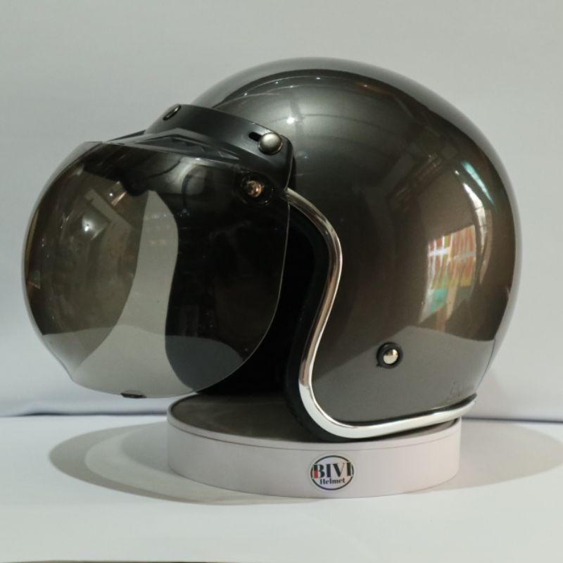 Helm Bogo Retro Kaca Cembung List Crome chrome chroom chroome Dewasa SNI Helmet Pria wanita