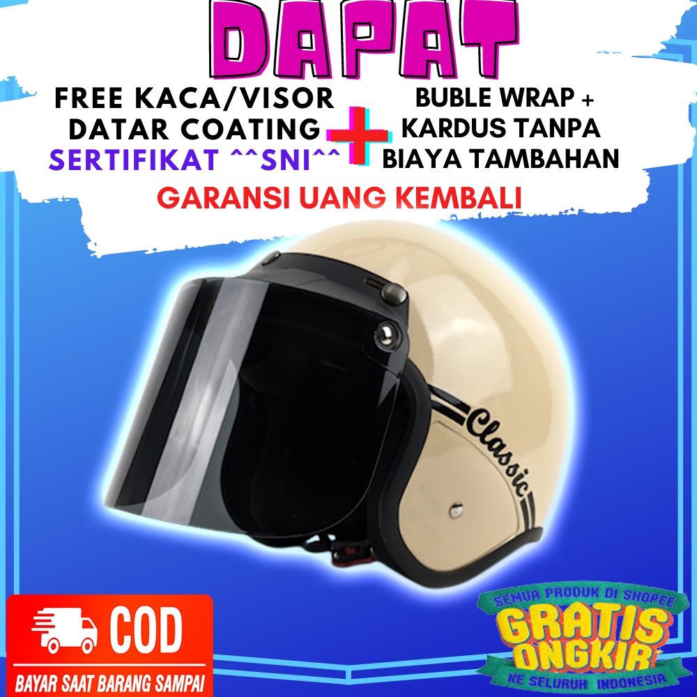 Kelebihan - Kelebihan membeli Helm/Helem Bogo Retro Ori SNI Classic wanita/klasik Cewek Dewasa Hijab Polos Murah+Kaca Datar di Toko ini