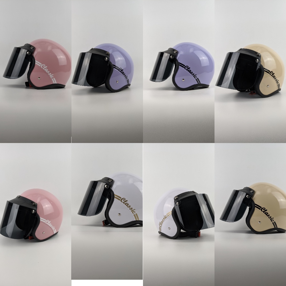 Helm/Helem Bogo Retro Ori SNI Classic wanita/klasik Cewek Dewasa Hijab Polos Murah+Kaca Datar