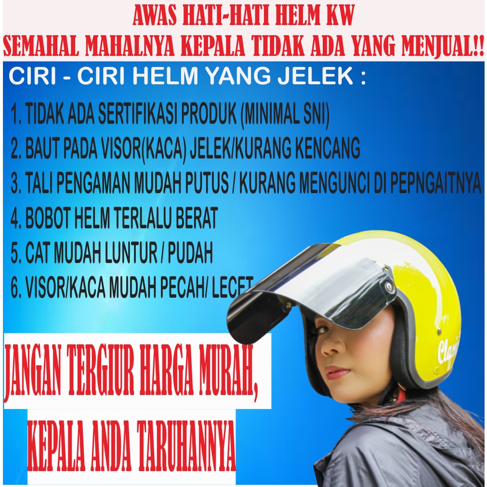 - Produk ini tidak sedang Flash Sale, tidak semua Seller suka Flash Sale, saya rasa ini bukan kekurangan, Jika Anda anggap Harga Rp. 100.000,00 itu murah untuk Helm/Helem Bogo Retro Ori SNI Classic wanita/klasik Cewek Dewasa Hijab Polos Murah+Kaca Datar ya ambil saja