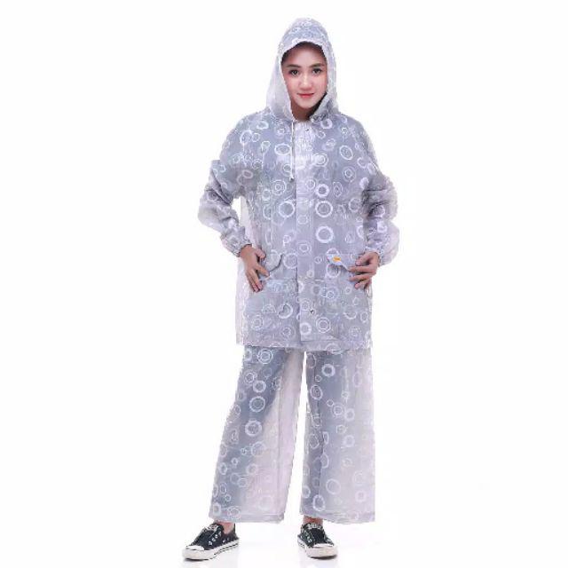 Jas Hujan Setelan Cewek Wanita Set Jaket Rok Bagus Tebal Cantik Bunga Elmondo Rosalia 802 MURAH