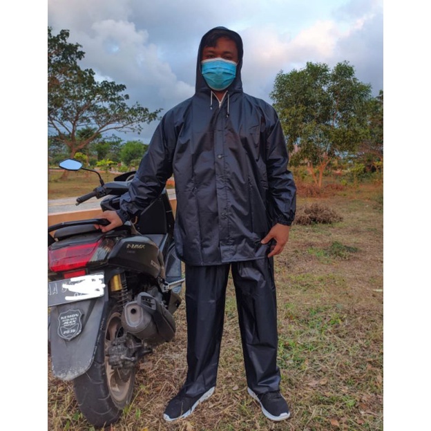 Jas Hujan Traveling Oneset Jaket Celana Midi & Gamis Mini Ponco Terusan Ekonomis Murah Praktis Unisex Pria Wanita