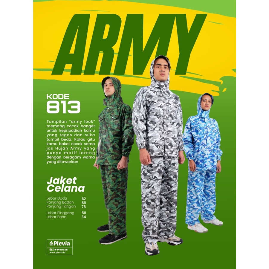 Jas Hujan Jaket Celana ARMY - Raincoat Mantel Hujan ARMY ARMI Doreng Loreng Tentara Plevia 813
