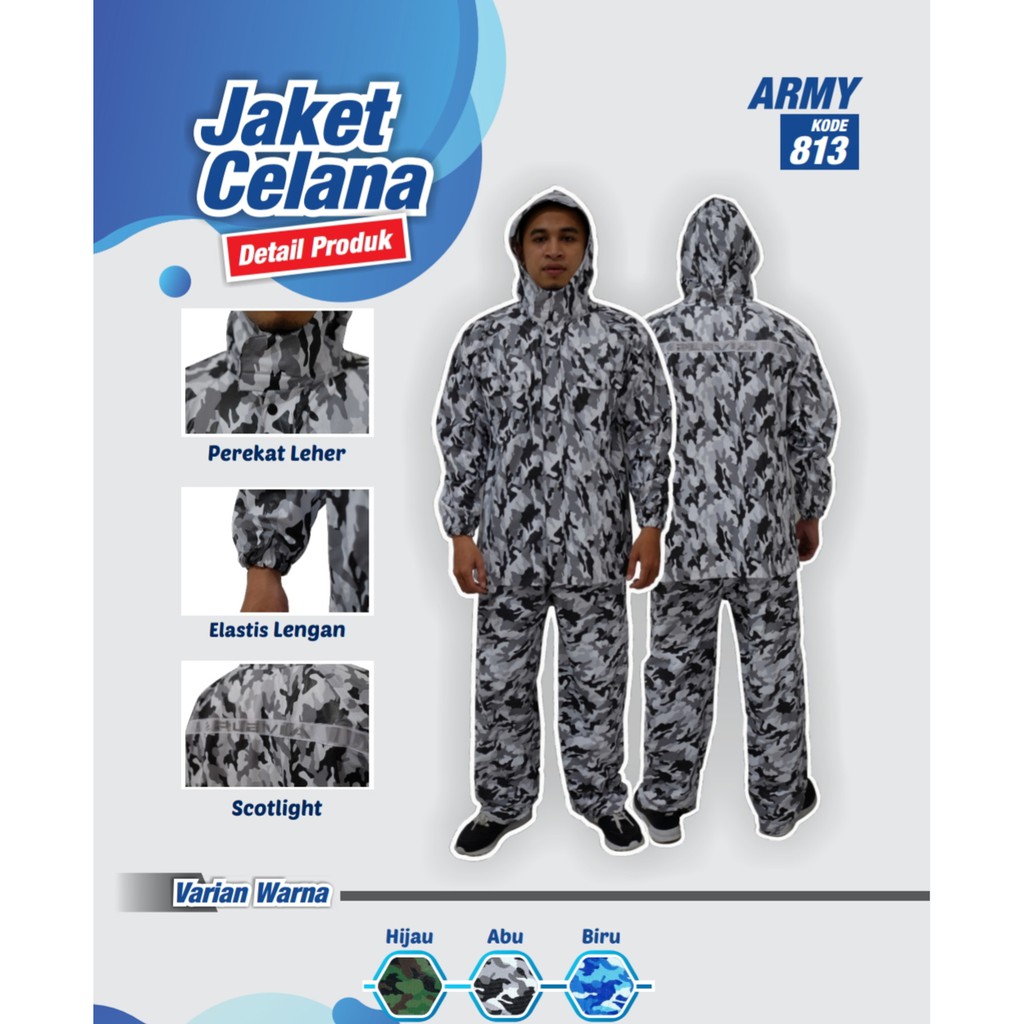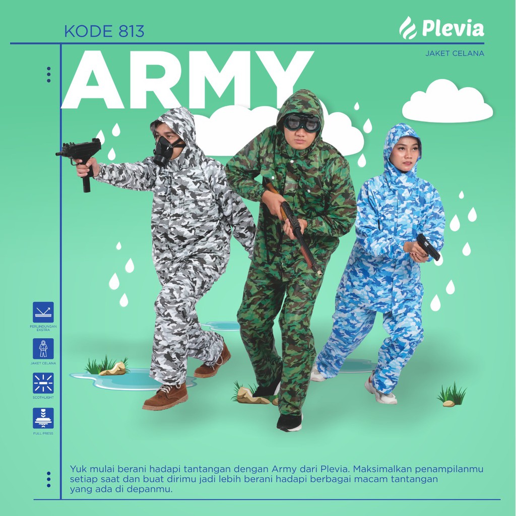Alasan kenapa harus beli Jas Hujan Jaket Celana ARMY - Raincoat Mantel Hujan ARMY ARMI Doreng Loreng Tentara Plevia 813 sekarang