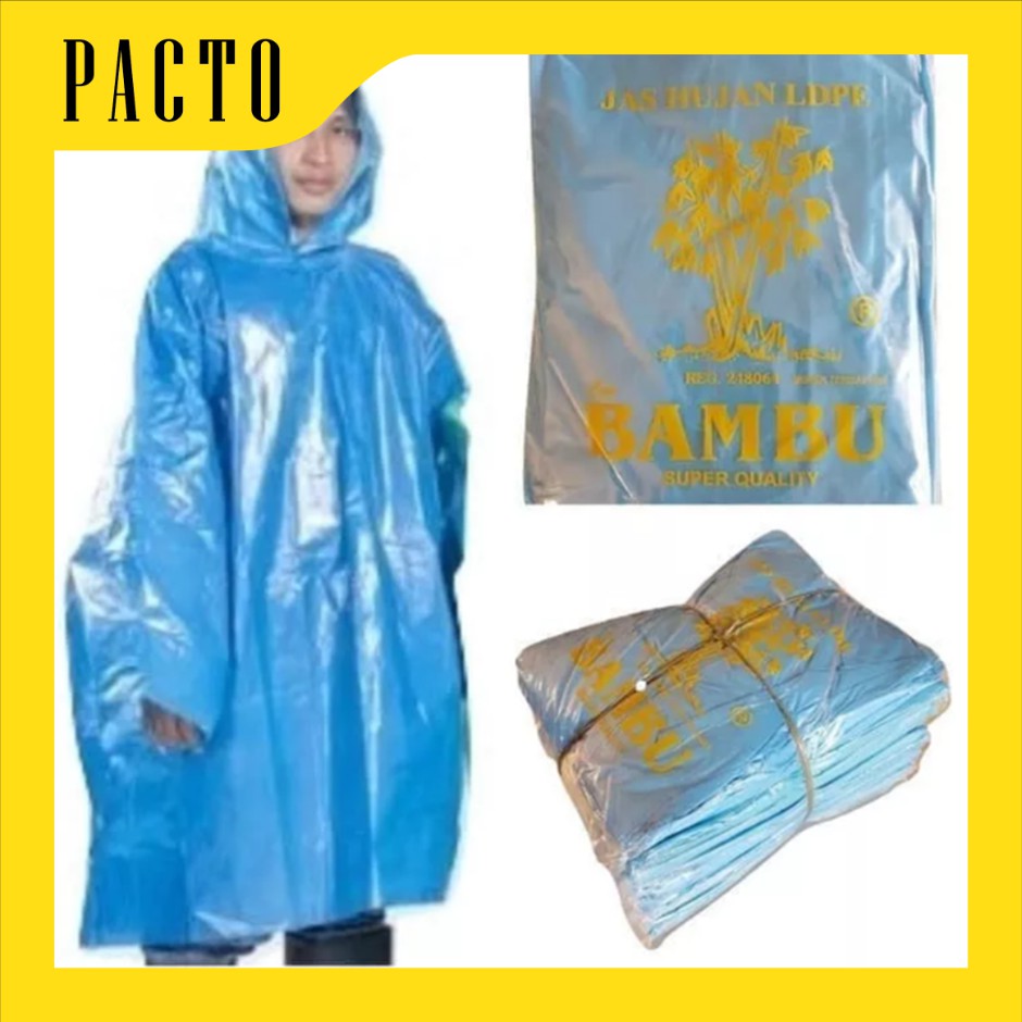 Jas Hujan Plastik LDPE Poncho Tebal MERK BAMBU - MADE IN INDONESIA (TIDAK BISA PILIH WARNA)