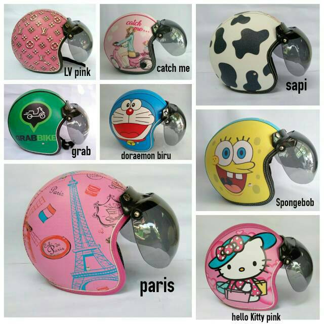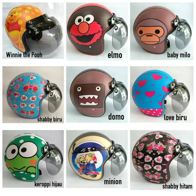 Kelebihan - Kelebihan membeli KARAKTER Helm Bogo Kulit Helm Bogo Karakter Hello Kitty Keroppi Stitch Elmo Love Minion di Toko ini