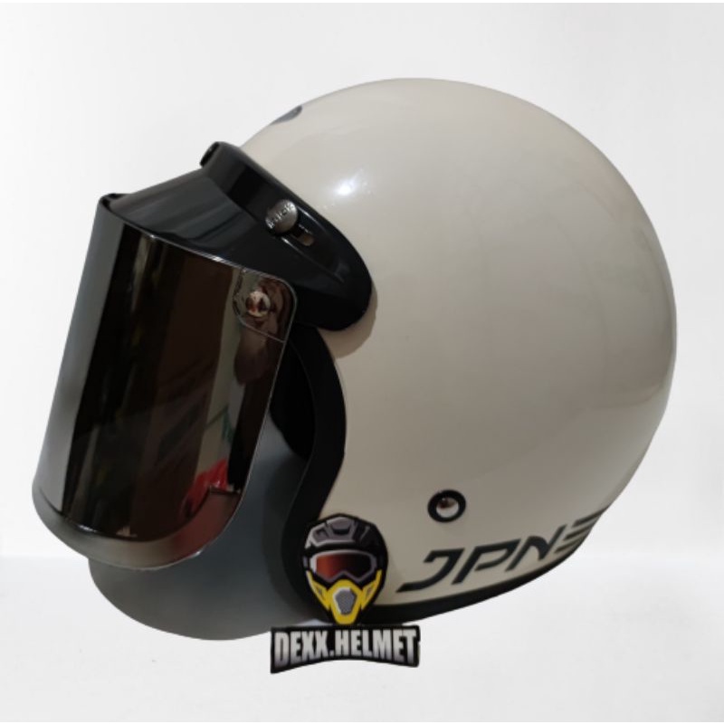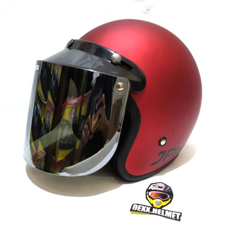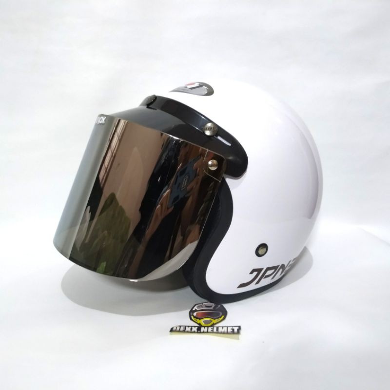 Kelebihan - Kelebihan membeli Paket Helm Bogo JPN Original Kaca Datar Injak Hitam Silver Pelangi Bening di Toko ini