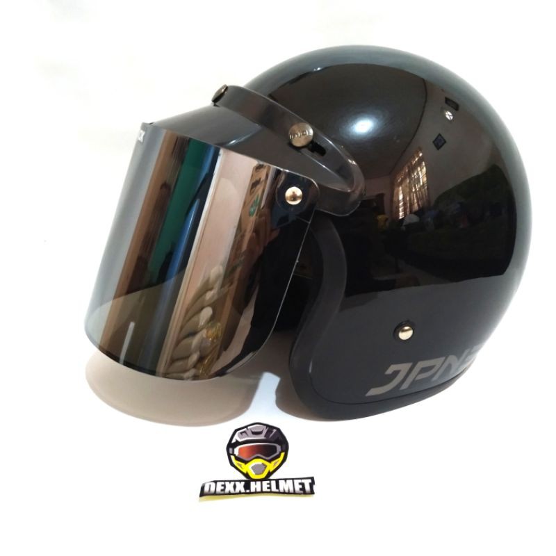 Alasan kenapa harus beli Paket Helm Bogo JPN Original Kaca Datar Injak Hitam Silver Pelangi Bening sekarang