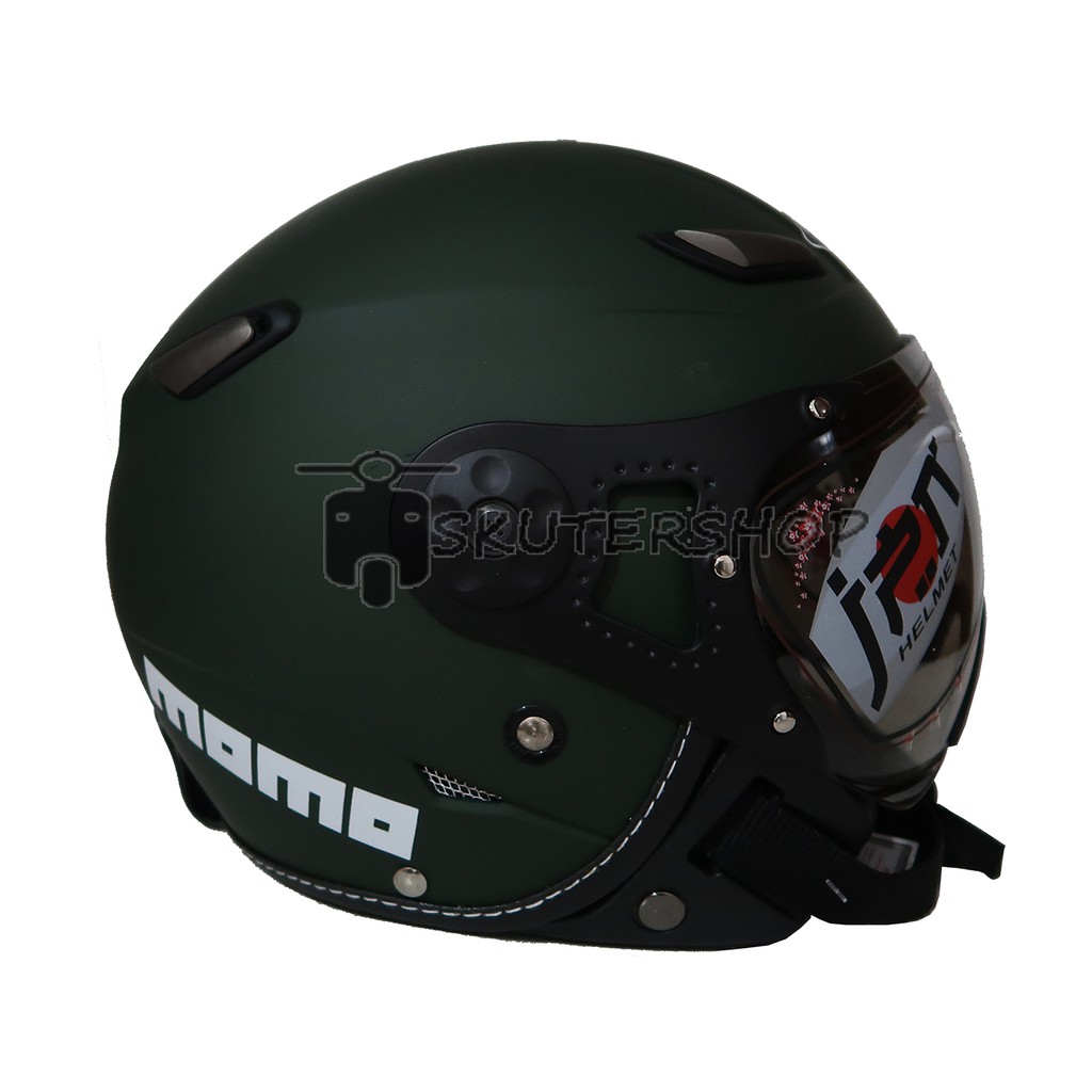 Alasan kenapa harus beli SkuterShop Helm Bogo Retro JPN Momo Klasik Kaca Pilot Riben Hijau Army Doff sekarang