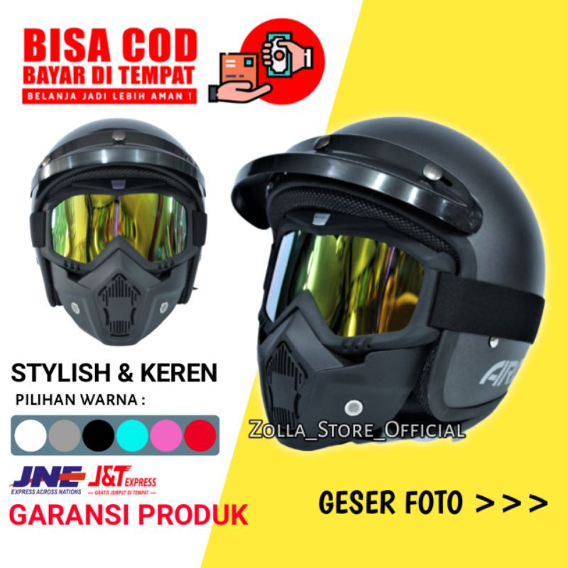 - Produk ini tidak sedang Flash Sale, tidak semua Seller suka Flash Sale, saya rasa ini bukan kekurangan, Jika Anda anggap Harga Rp. 74.500,00 itu murah untuk (TERMURAH) Helm Bogo Retro KACAMATA GOOGLEMASK Motor Cross Klx Crf Touring Wanita Pria Dewasa SNI ya ambil saja