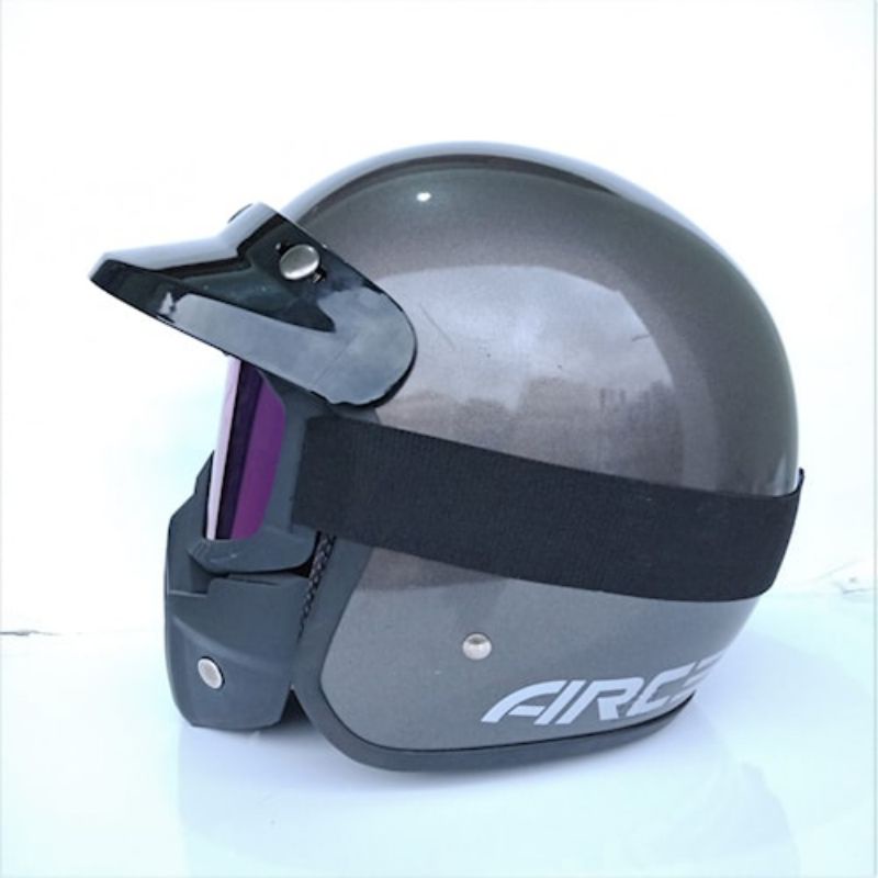 HELM BOGO DEWASA Retro ARC GARIS ORIGINAL KACA DATAR KACA CEMBUNG SNI