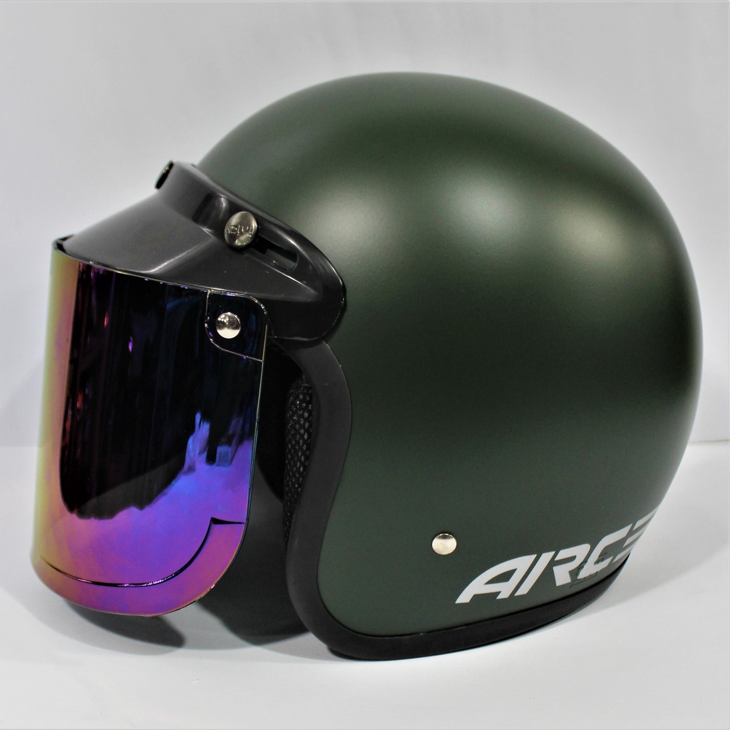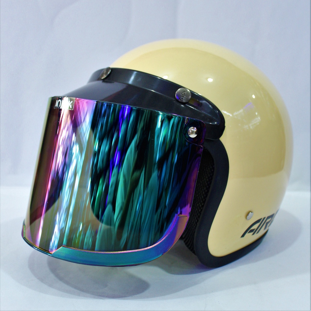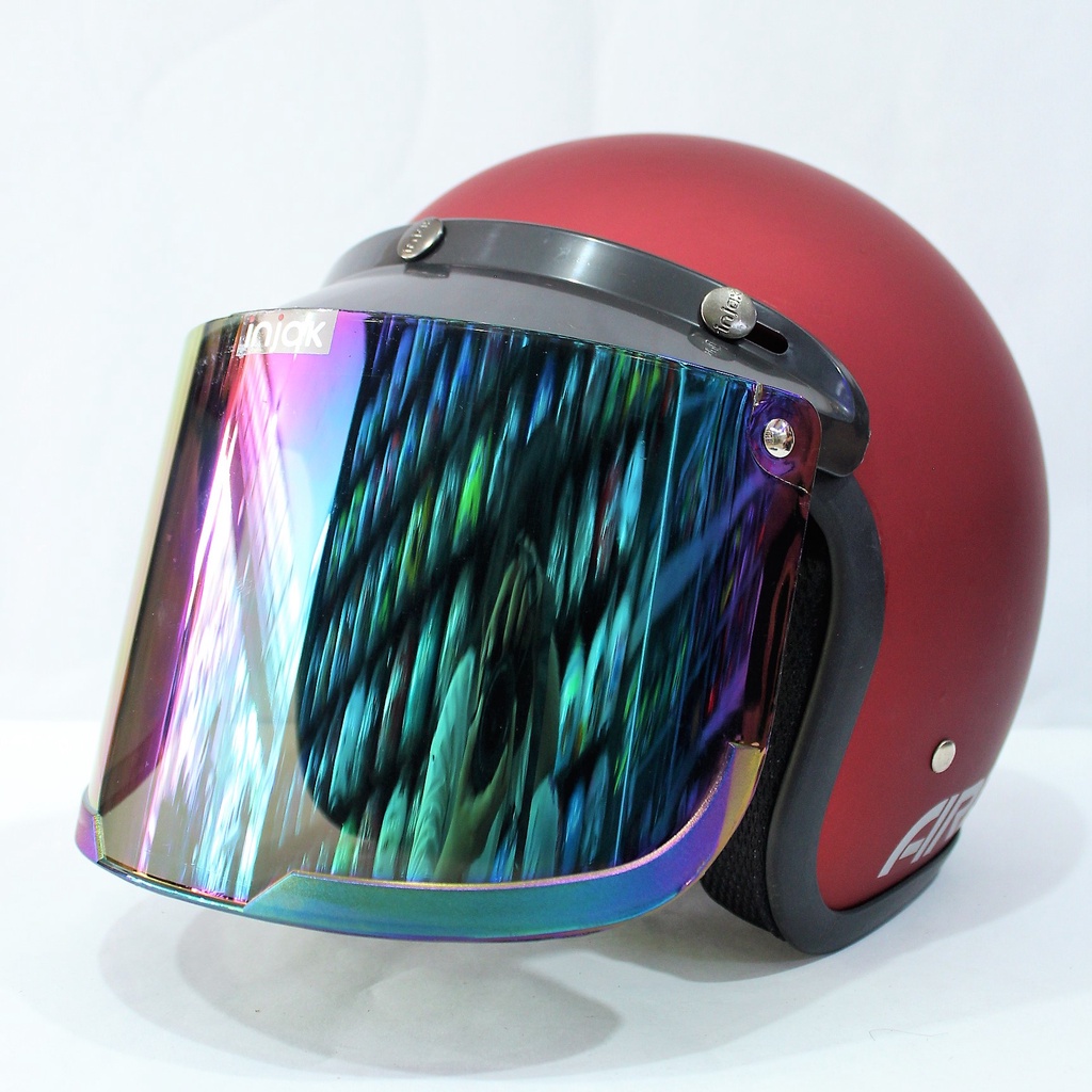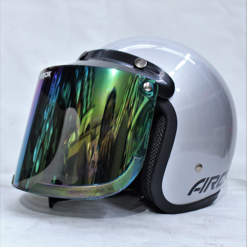 Helm Bogo Retro Dewasa Pria Wanita SNI polos Classic Kaca Datar