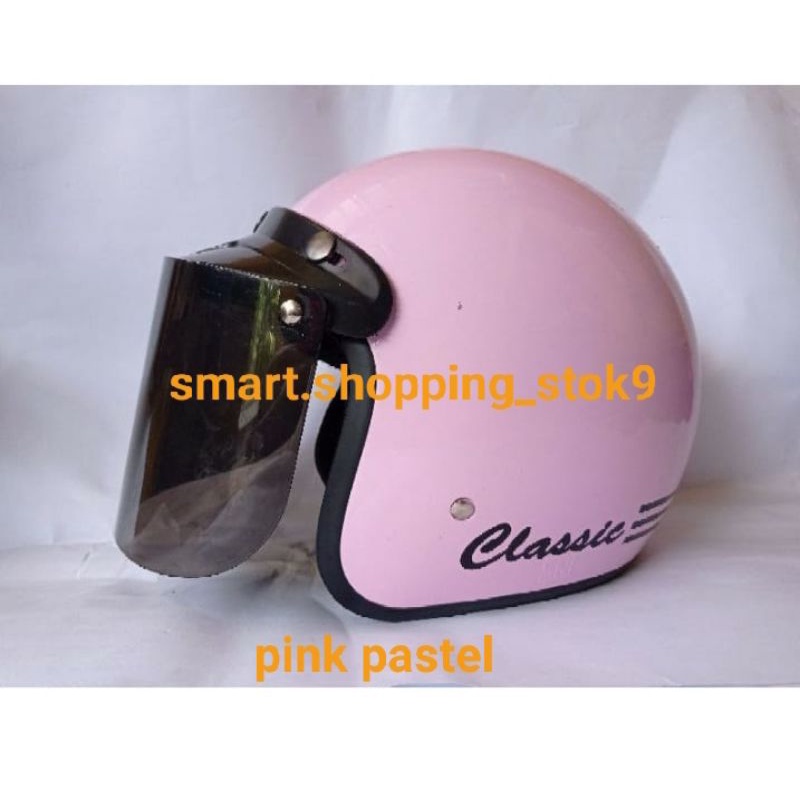 Helm Bogo Jpn Retro Pink Magenta Doff Kaca Datar Flat Visor
