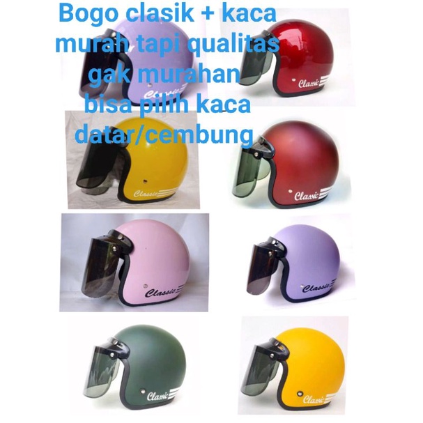 Helm Bogo clasik + kaca datar atau cembung