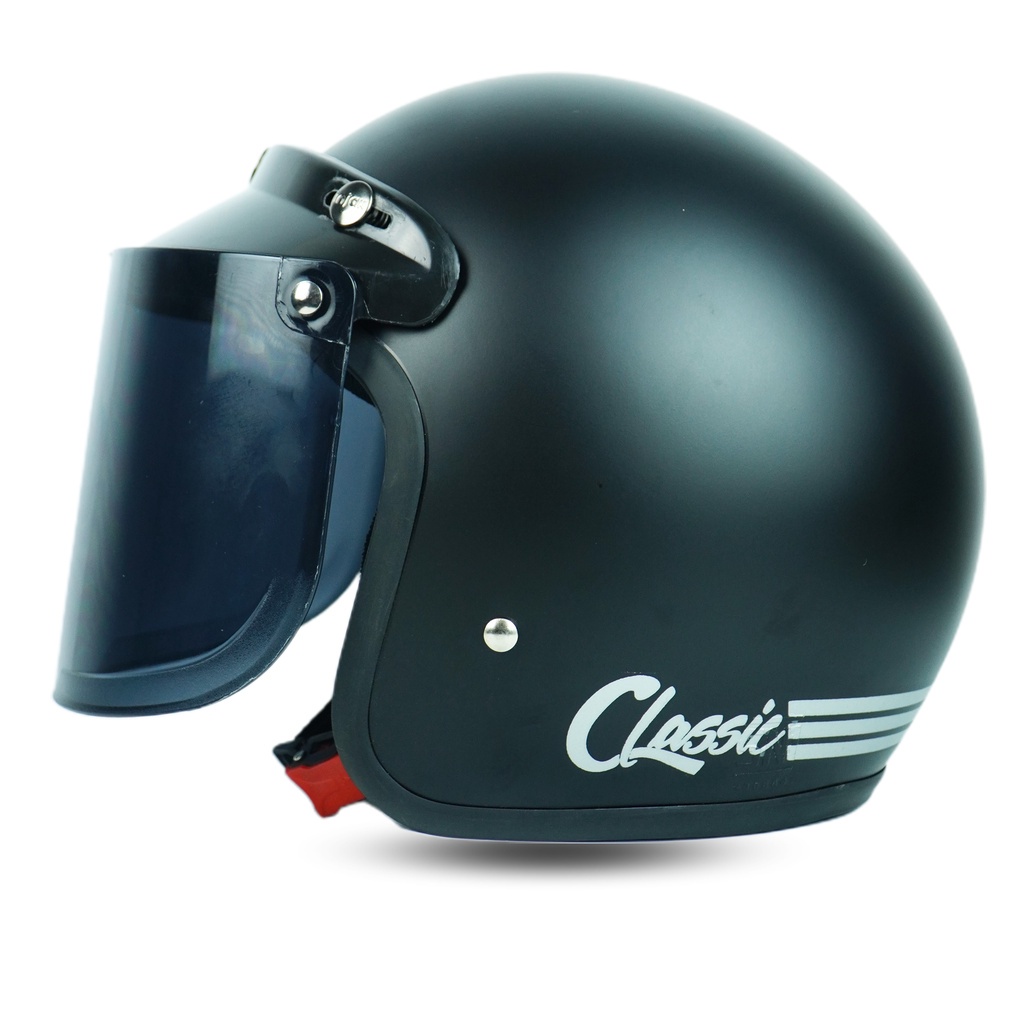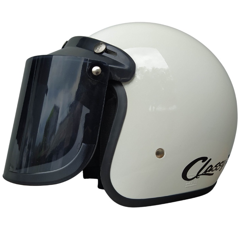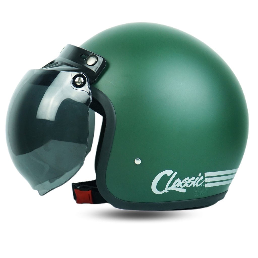 Helm Bogo Classic Classik Garis pria wanita dewasa Kaca Datar Cembung SNI