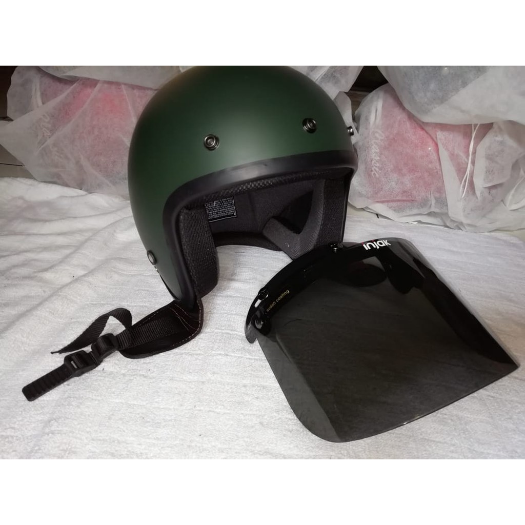 Kekurangan - Kekurangan membeli HELM BOGO CLASSIC DEWASA WARNA HIJAU ARMY DOFF KACA DATAR SMOKE [BEST SELLER] di Toko ini