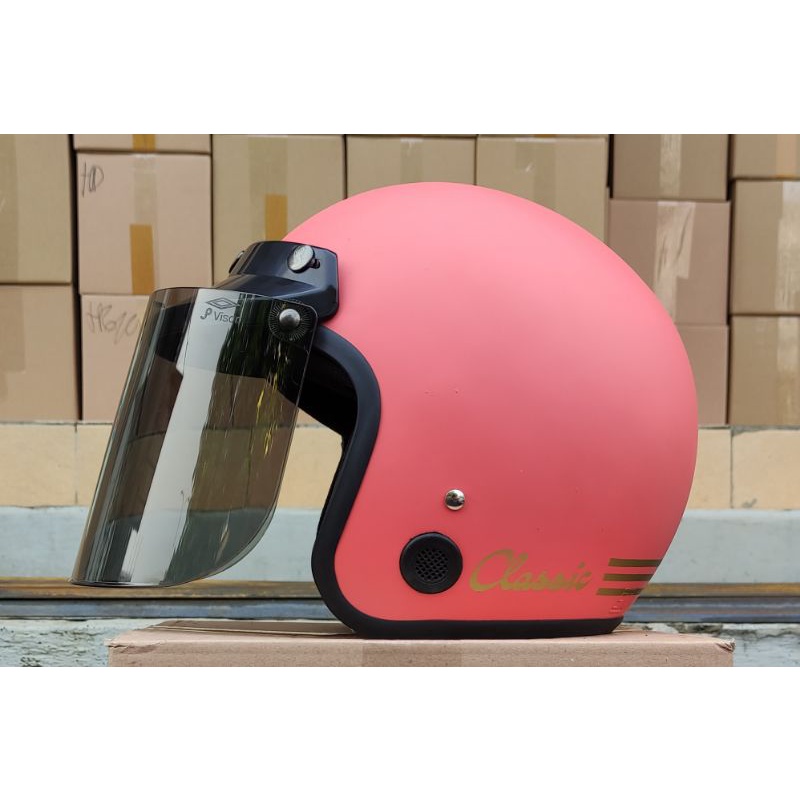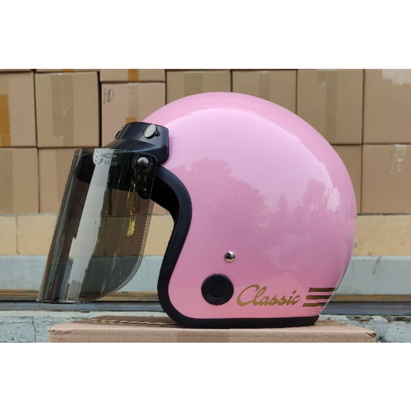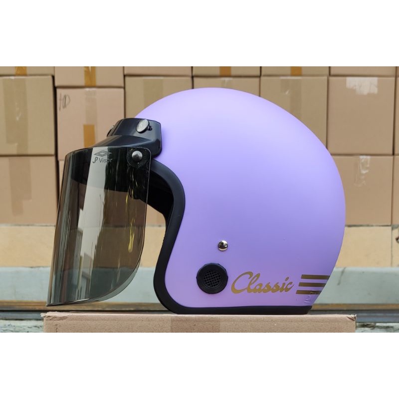 Helm Bogo Dewasa Polos Retro Wanita Classic Warna Pastel Kekinian Terlaris Original