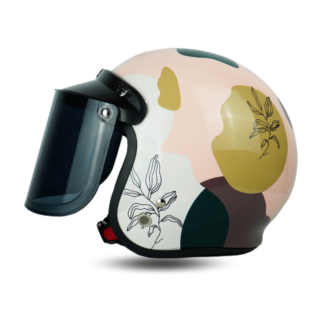HELM BOGO RETRO WARNA PASTEL LIST CHROME KACA BOGO ORIGINAL