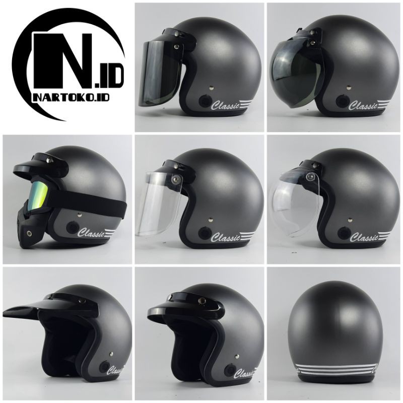 HELM BOGO RETRO DEWASA POLOS DOFF MERK JPN ORIGINAL KACA FLAT DATAR DAN CEMBUNG UNTUK PRIA WANITA