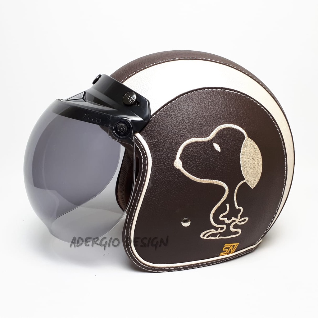 Helm Bogo Dewasa Kaca Bogo Ori Wanita Pria Full Leher SNI Karakter Kulit Bordir