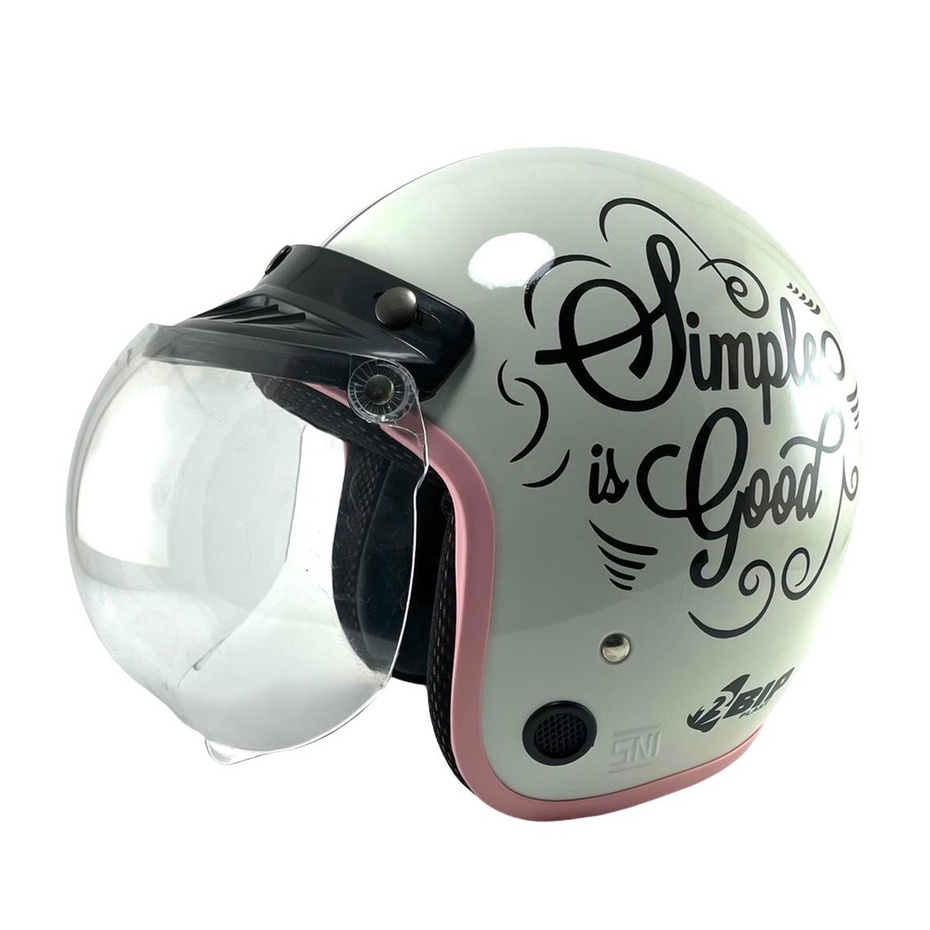 Helm Bogo Retro Dewasa Pria Wanita Polos Garis SNI Terbaru