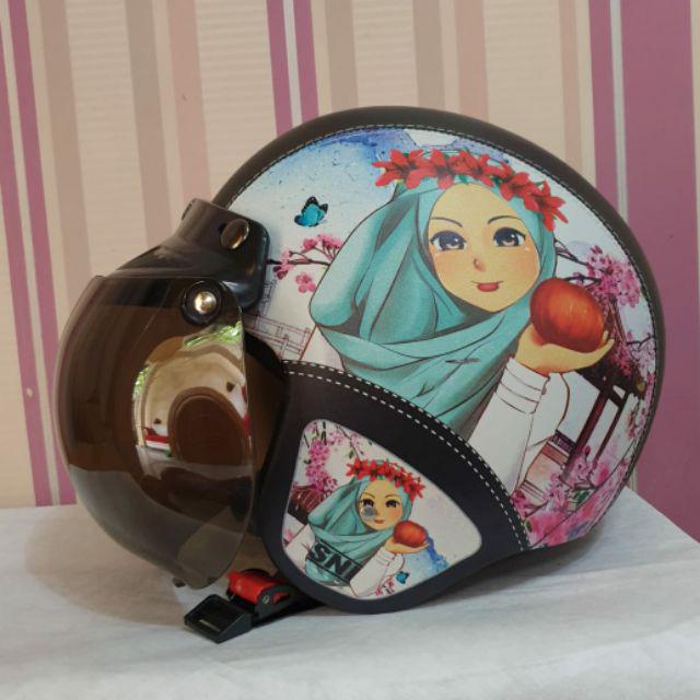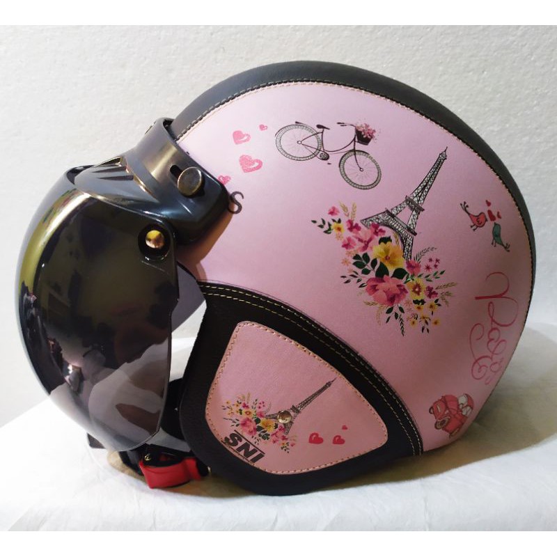 Helm Bogo Wanita Pastel Retro Dewasa SNI