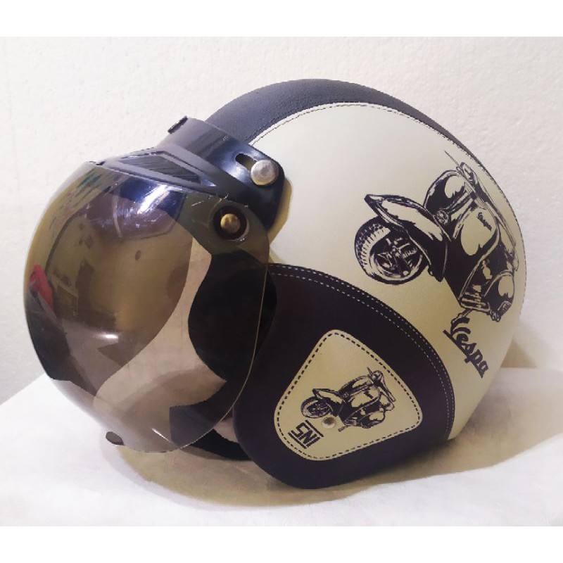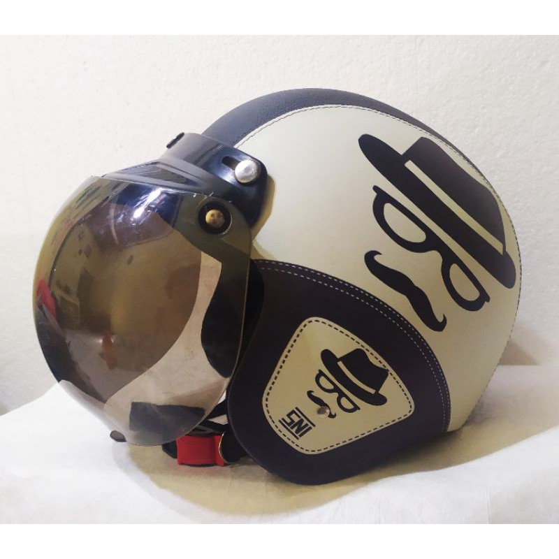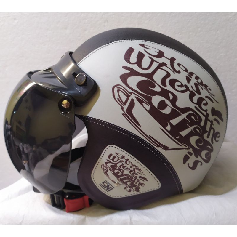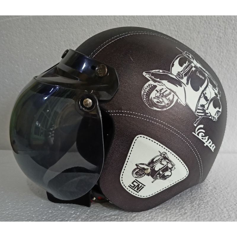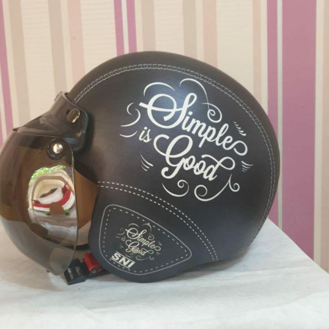 HELM BOGO DEWASA WANITA KACA DATAR RETRO FULL LEHER SNI PRIA CEWEK MURAH POLOS ORIGINAL